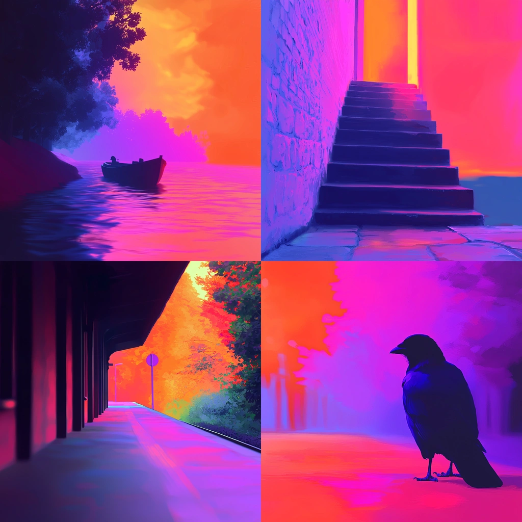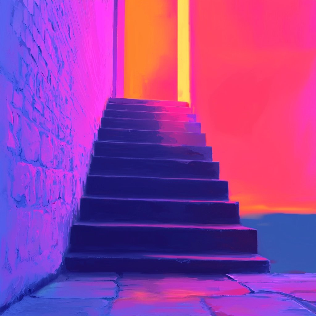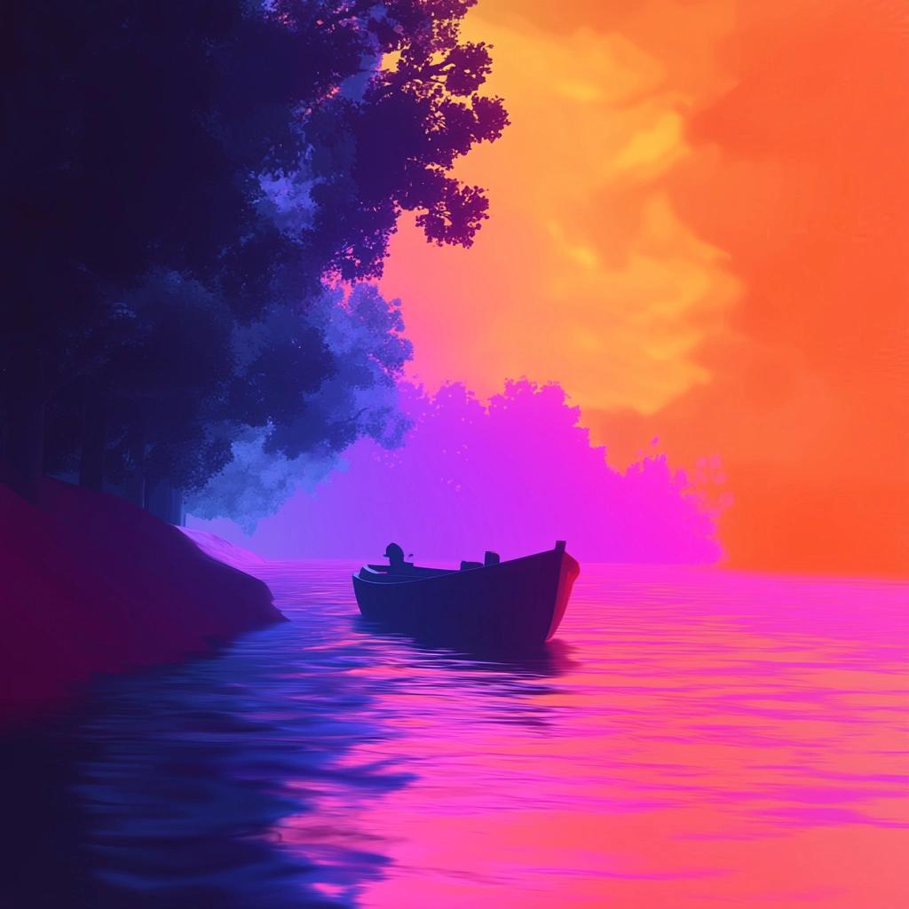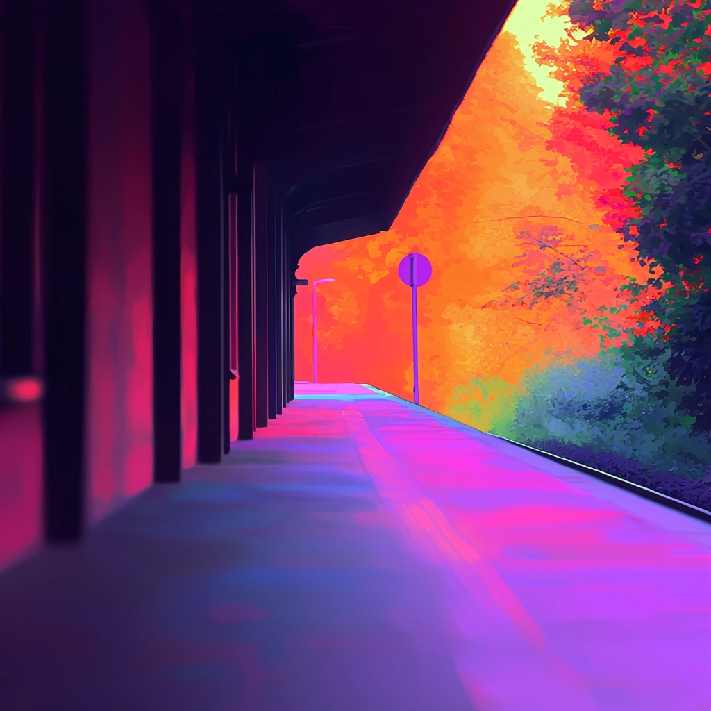 Bold lighting effects enhance vivid colors, creating a dynamic spatial environment. The textures are smooth and polished, and color transitions are seamless, offering a harmonious yet vibrant visual experience.