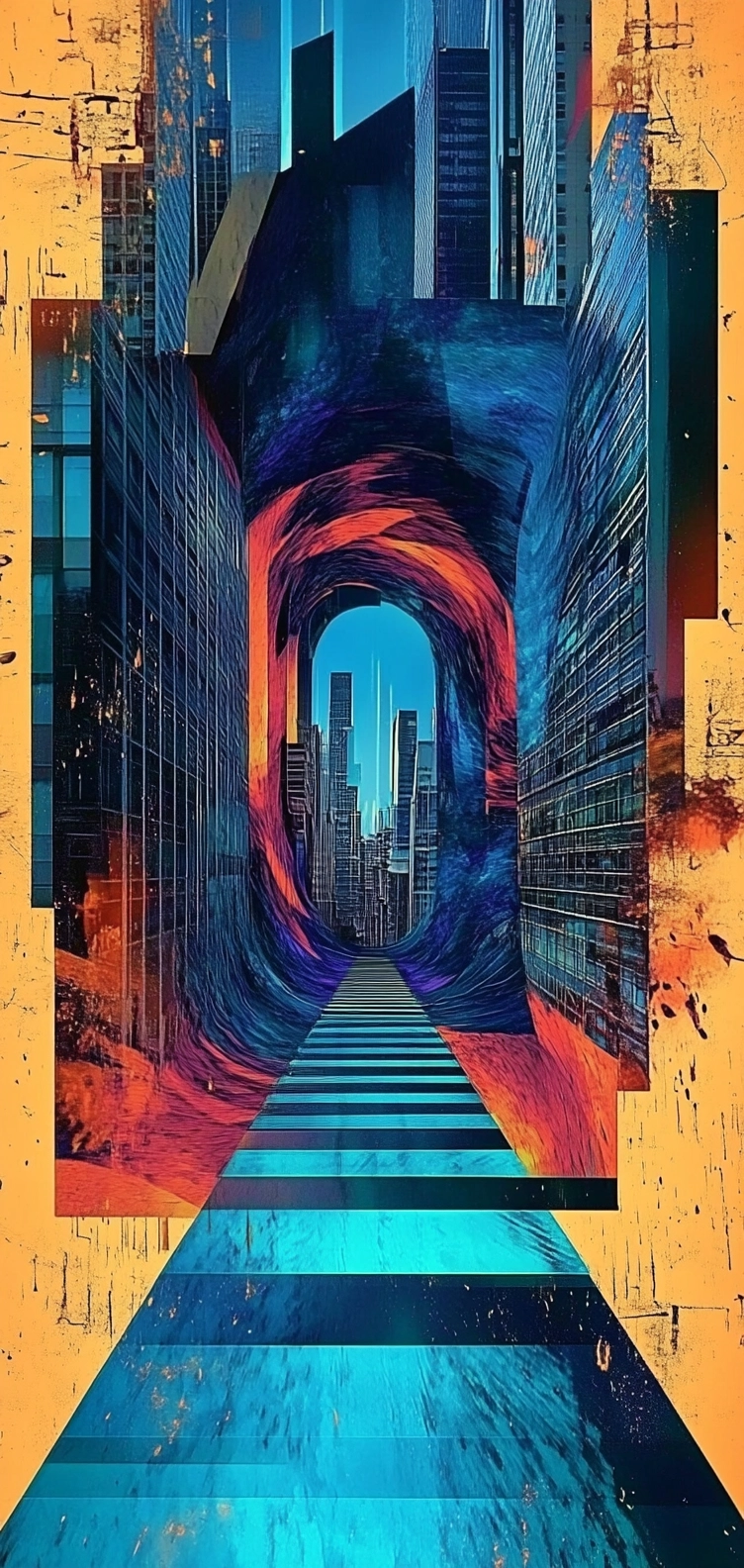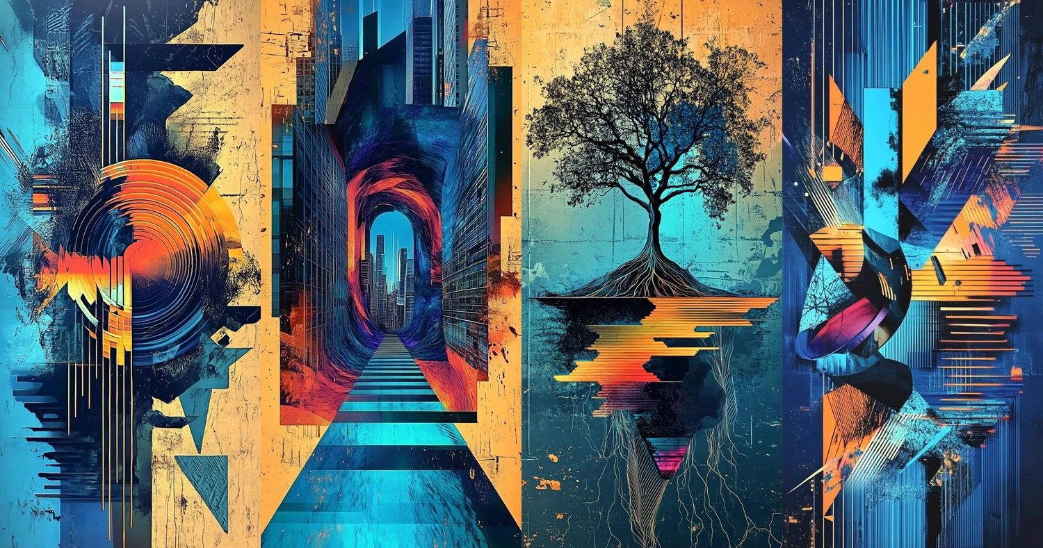 A dynamic interplay of bold geometric shapes with vibrant contrasts.