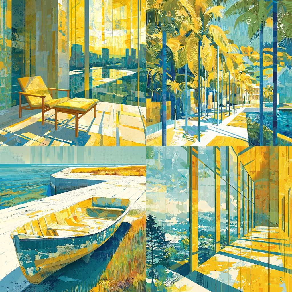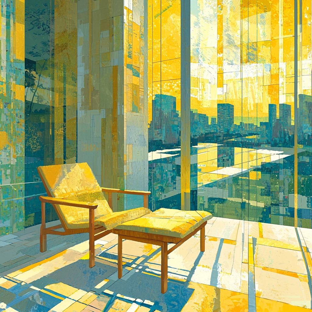 Bold use of geometric shapes with dynamic interplay of light and color.