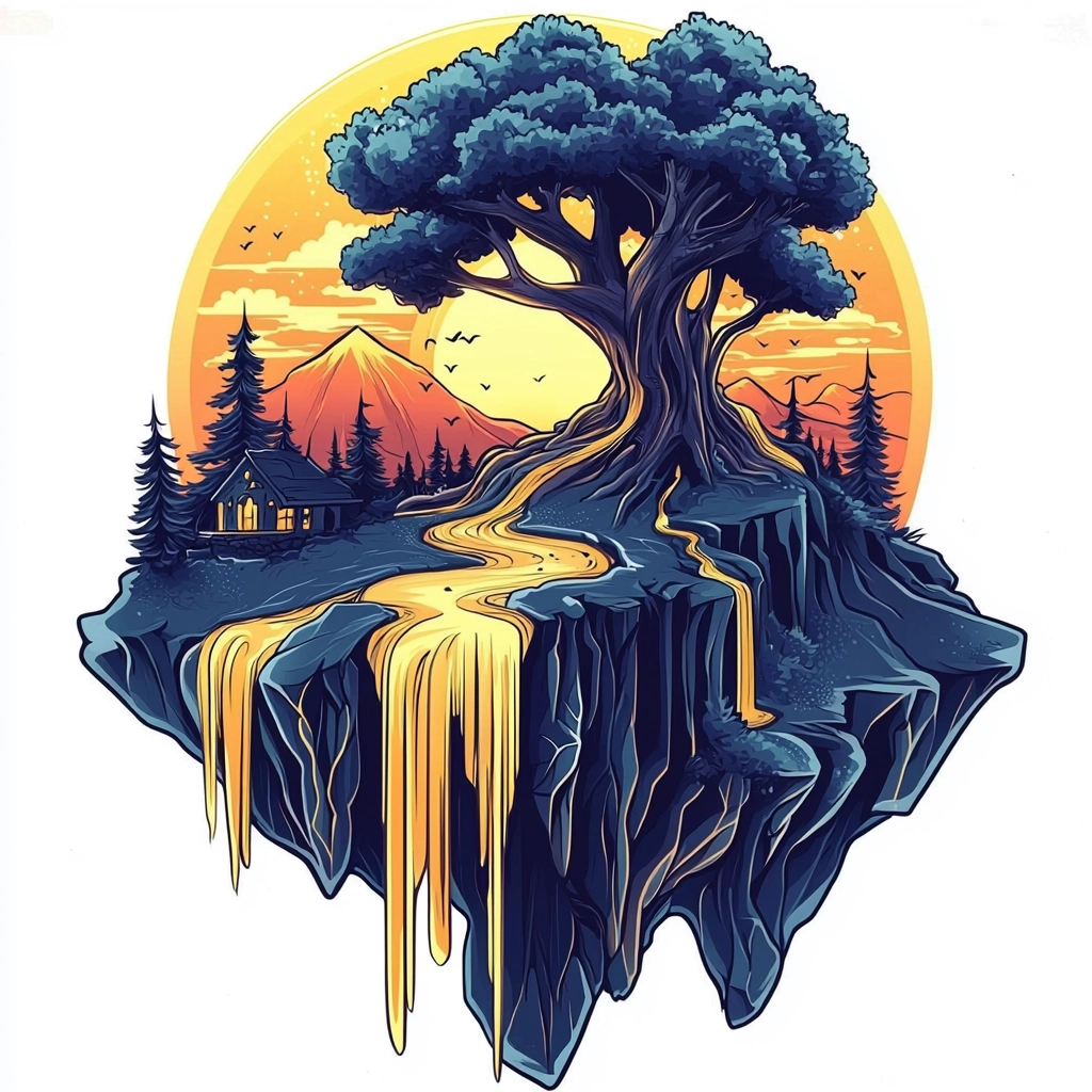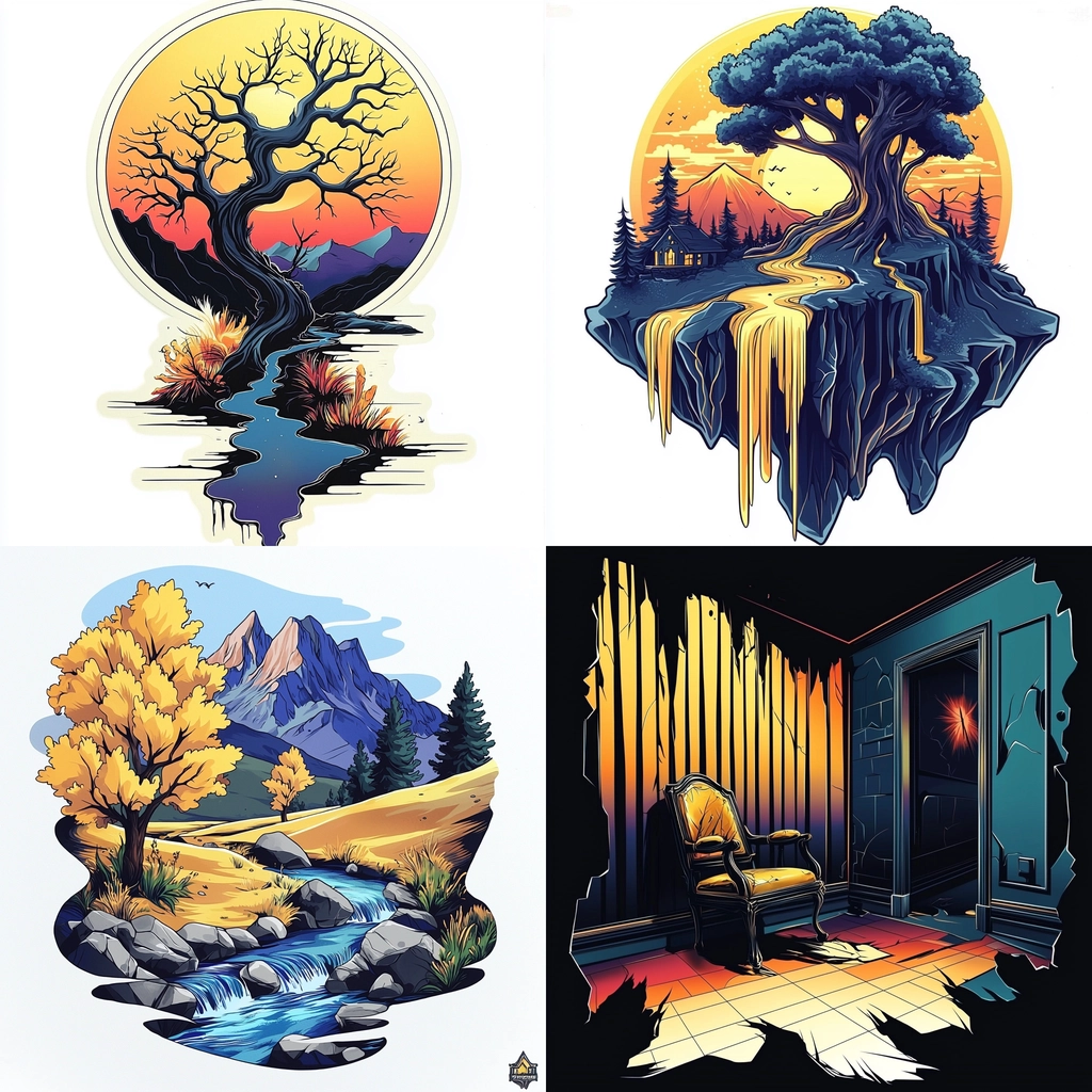 Luminous gradients transition smoothly, enhancing depth and contrast with stark lighting effects. The use of shadow creates a sharp spatial separation, while textures are rendered with clarity, highlighting details vividly to convey a surreal sense of reality.