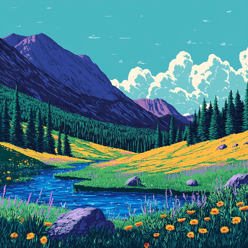 The visual experience highlights striking, bold landscapes with dynamic color contrasts.