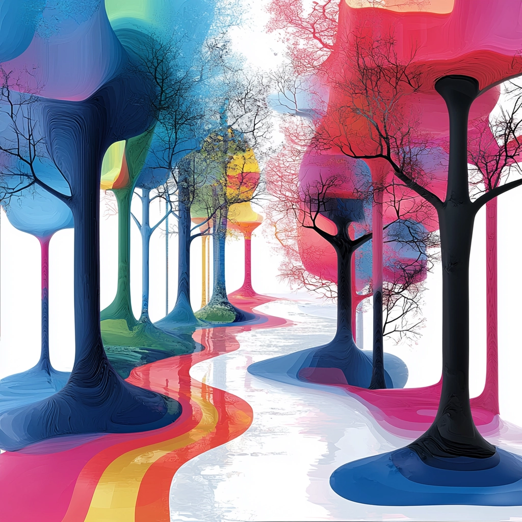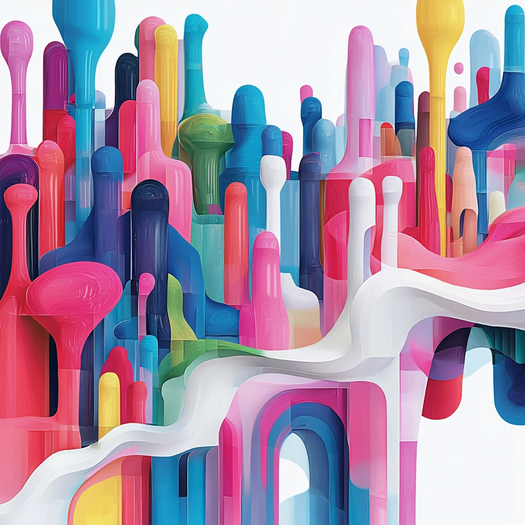 Clean, bold layers of vibrant hues creating flowing forms.