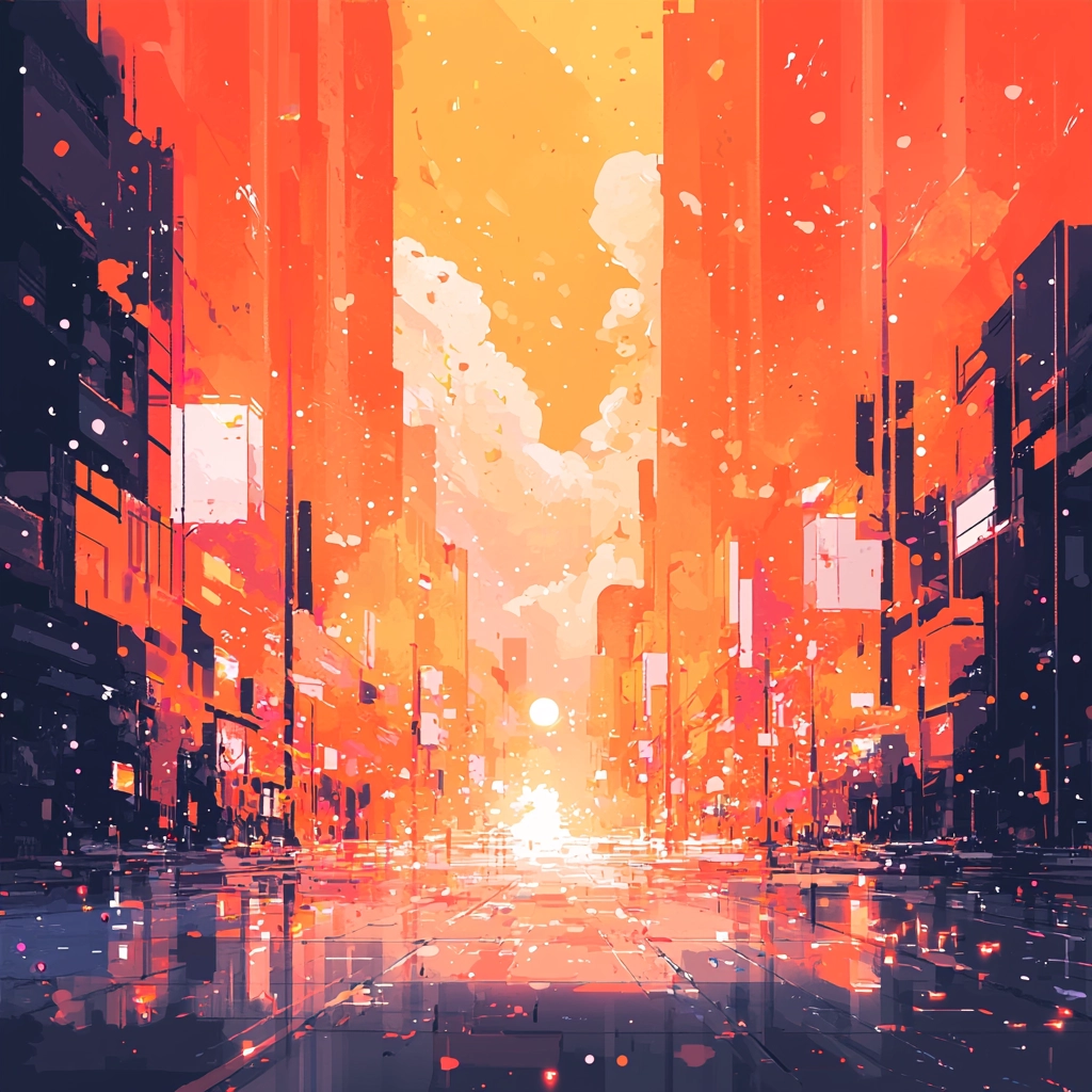 Dynamic hues contrast with stark tones, creating vibrant and intense scenery.