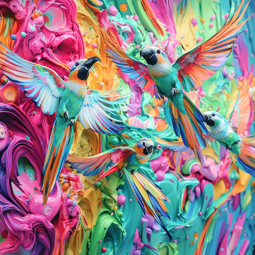 The lighting enhances the striking contrast between colors, creating a sense of depth and movement. The textures appear smooth and fluid, suggesting a sense of dynamic swirling that unifies the composition.