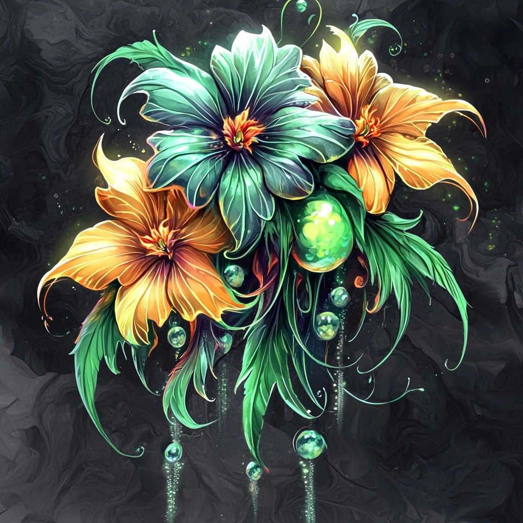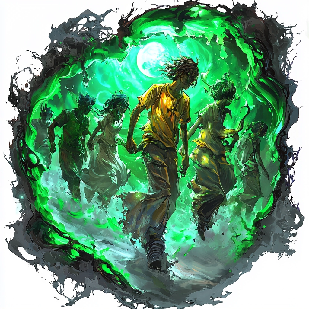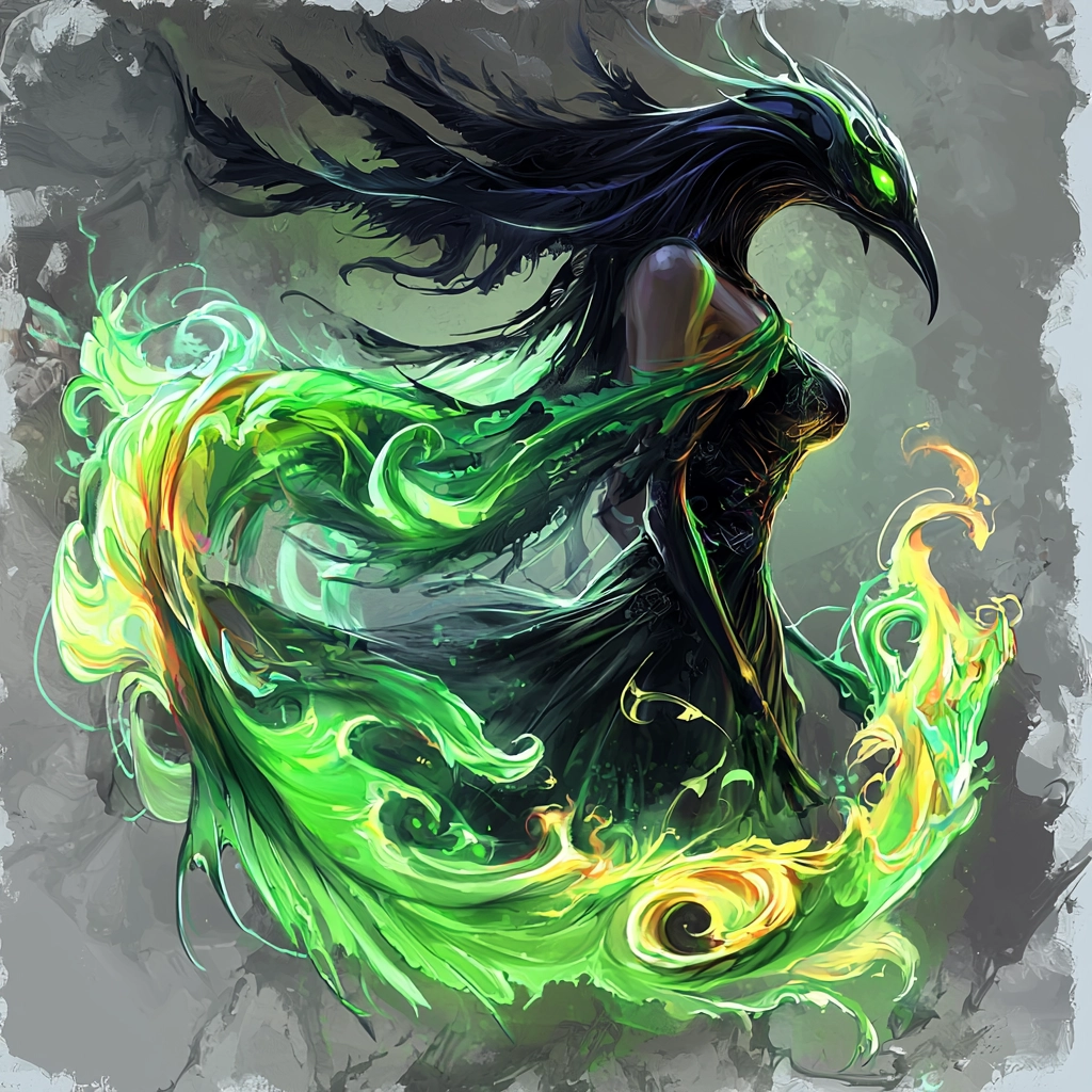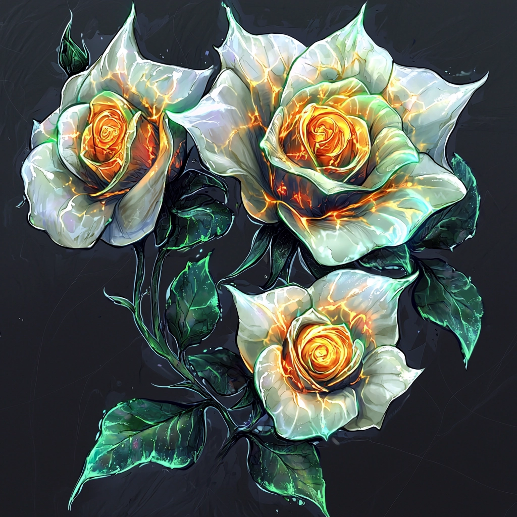 Bold lighting contrasts heighten the neon colors, creating a glowing effect. Detailed textures are achieved through meticulous line work, while spatial depth is built by layering elements to capture intricate detailing.