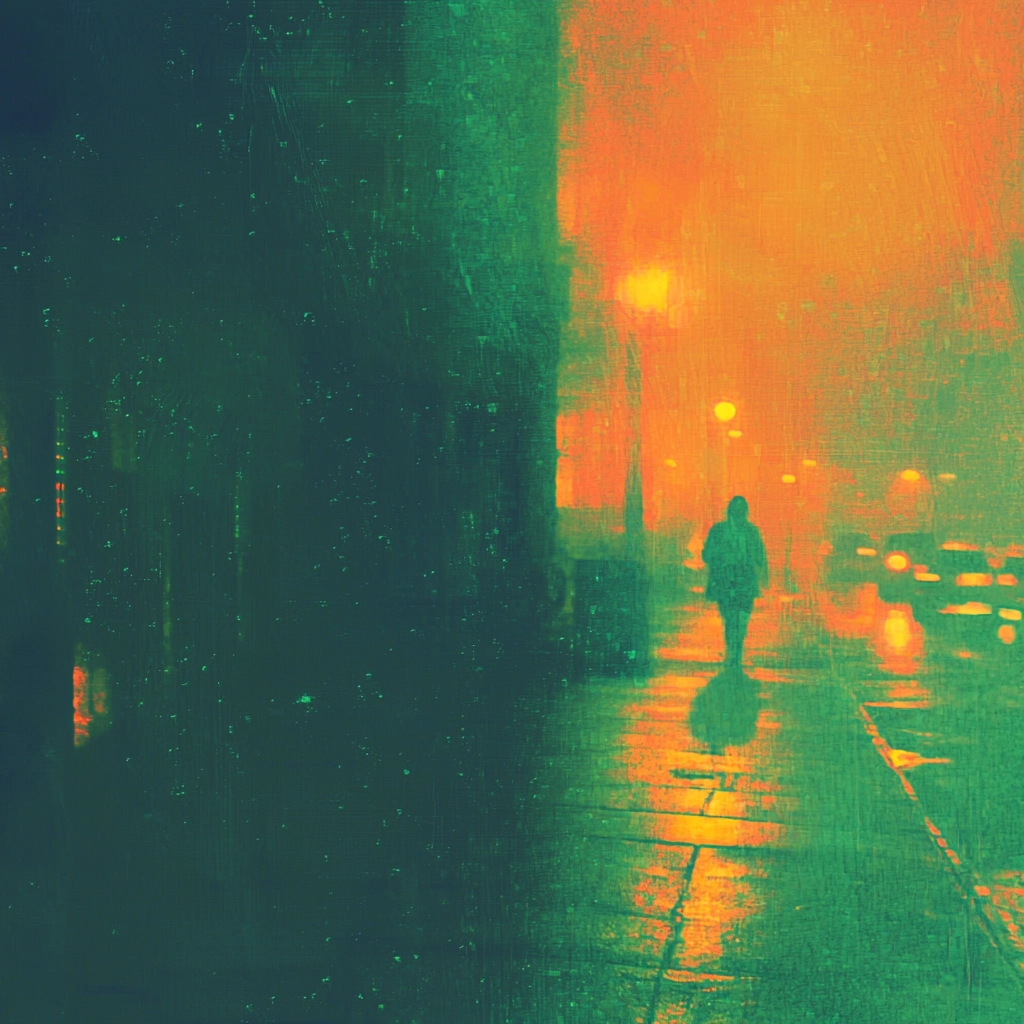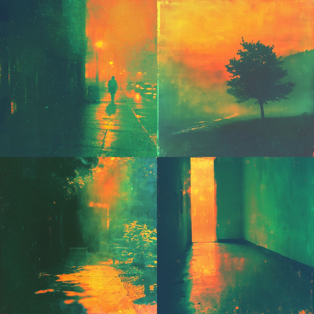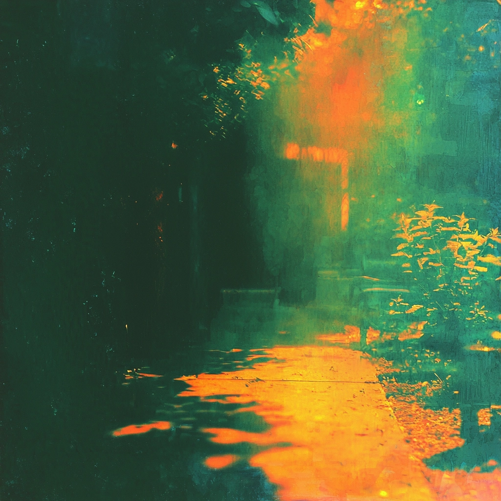 Dynamic lighting with rich green and orange hues.