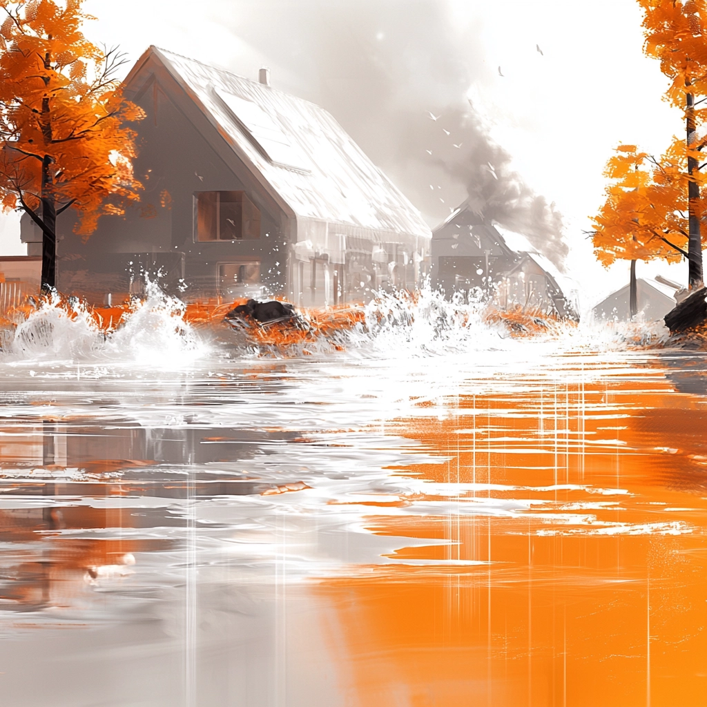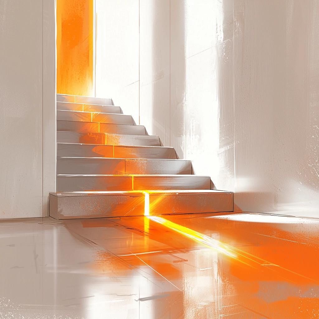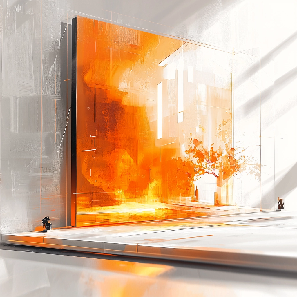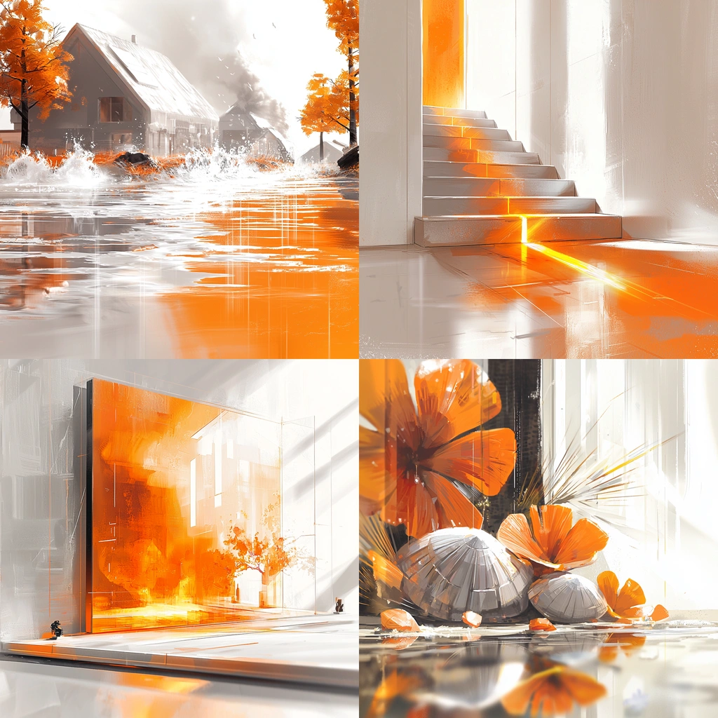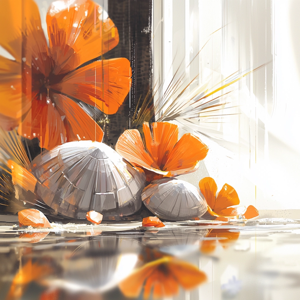 Bright orange contrasts with soft whites creating a dynamic interplay.