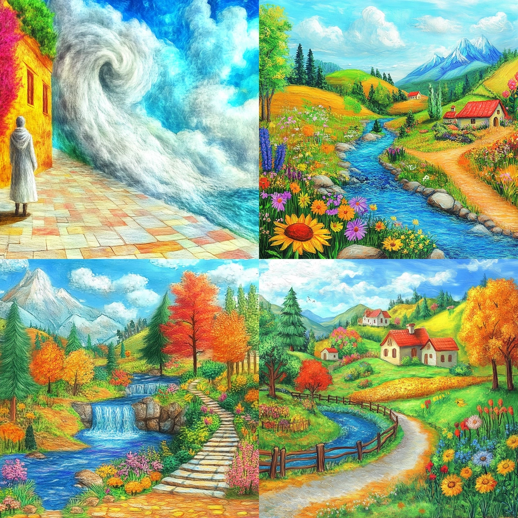 A luminous interplay of dynamic colors and idyllic landscapes.