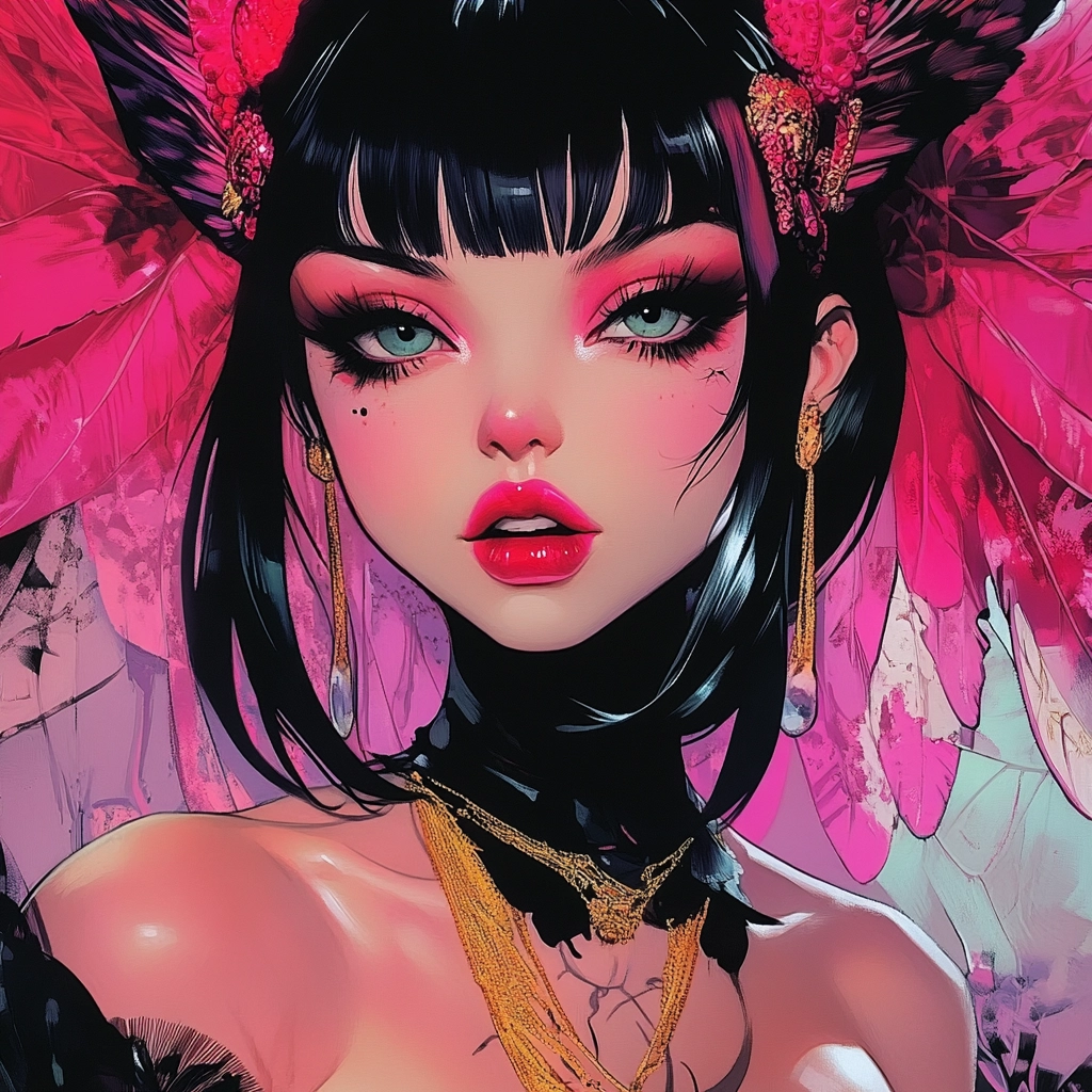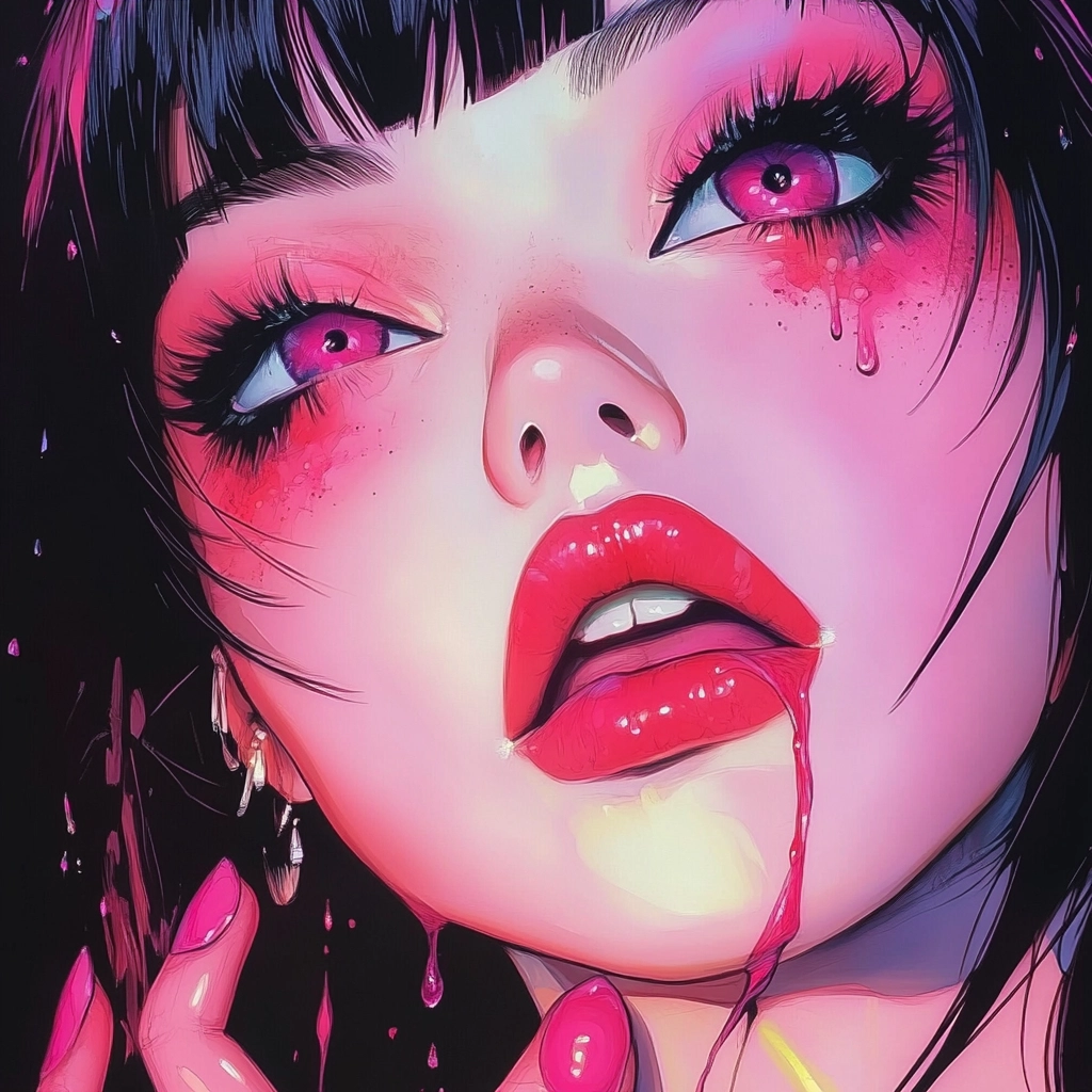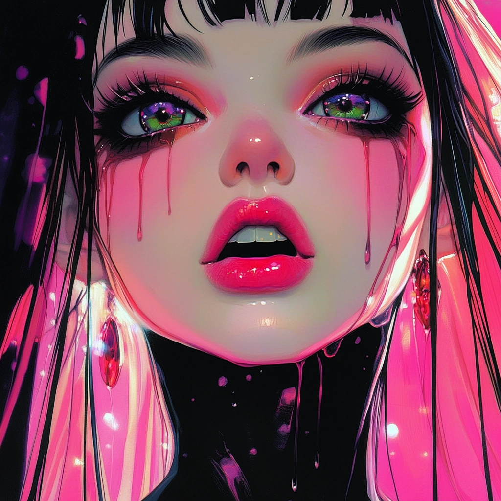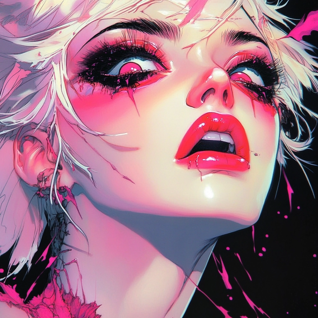 High contrast lighting amplifies the vivid pinks, ensuring they stand out against a dark backdrop. Color gradients contribute to depth and richness, with a slick textured appearance.
