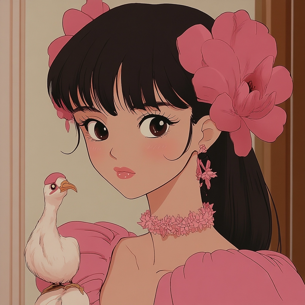 Lighting is soft, creating a smooth visual flow. Colors are vibrant with a pastel touch that emphasizes a gentle, inviting quality. The spatial arrangement allows each element to be distinctly perceived, while the textures are flat yet refined, enhancing the clear lines and charming details.