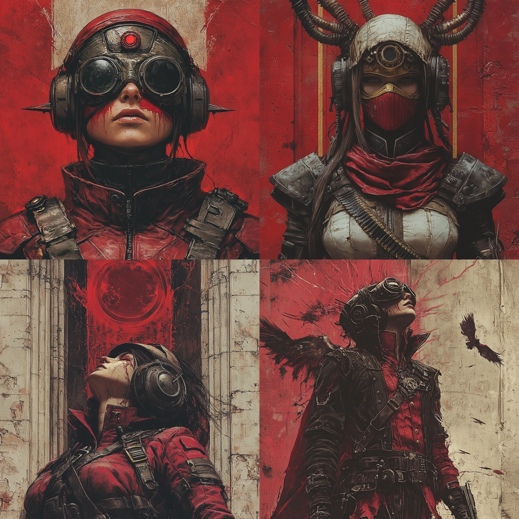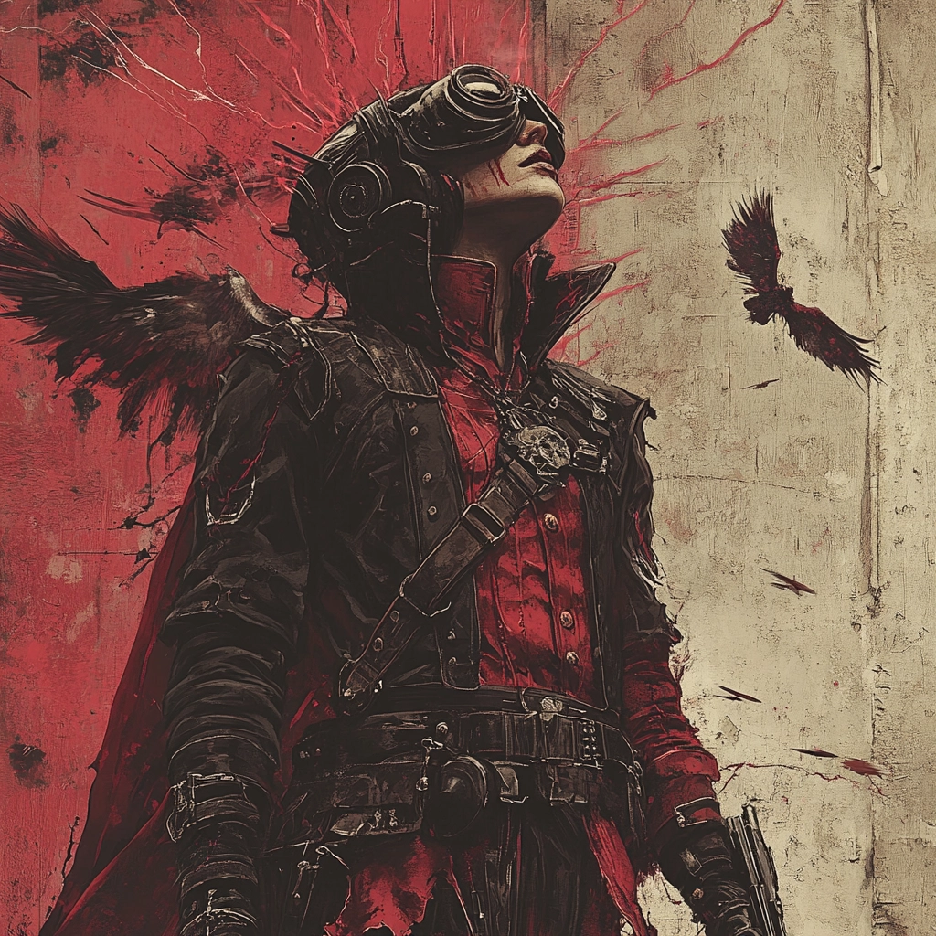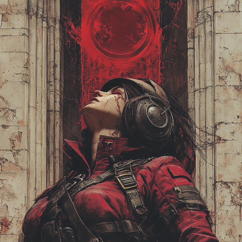 Dynamic lighting enhances the interplay of bold red and deep black, creating stark contrasts. Textures reveal finely detailed surfaces and evoke a robust spatial depth, reminiscent of baroque sensibilities intertwined with contemporary flair.