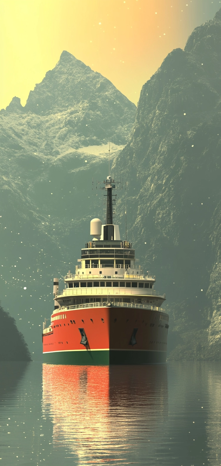 The use of reflective water surfaces emphasizes vibrant lighting and color contrasts. Crisp textures and strong spatial depth are achieved through clean lines and defined shapes, enhancing the sense of realism and clarity.