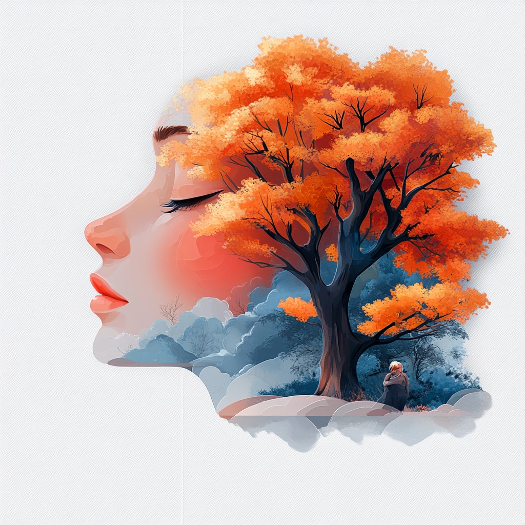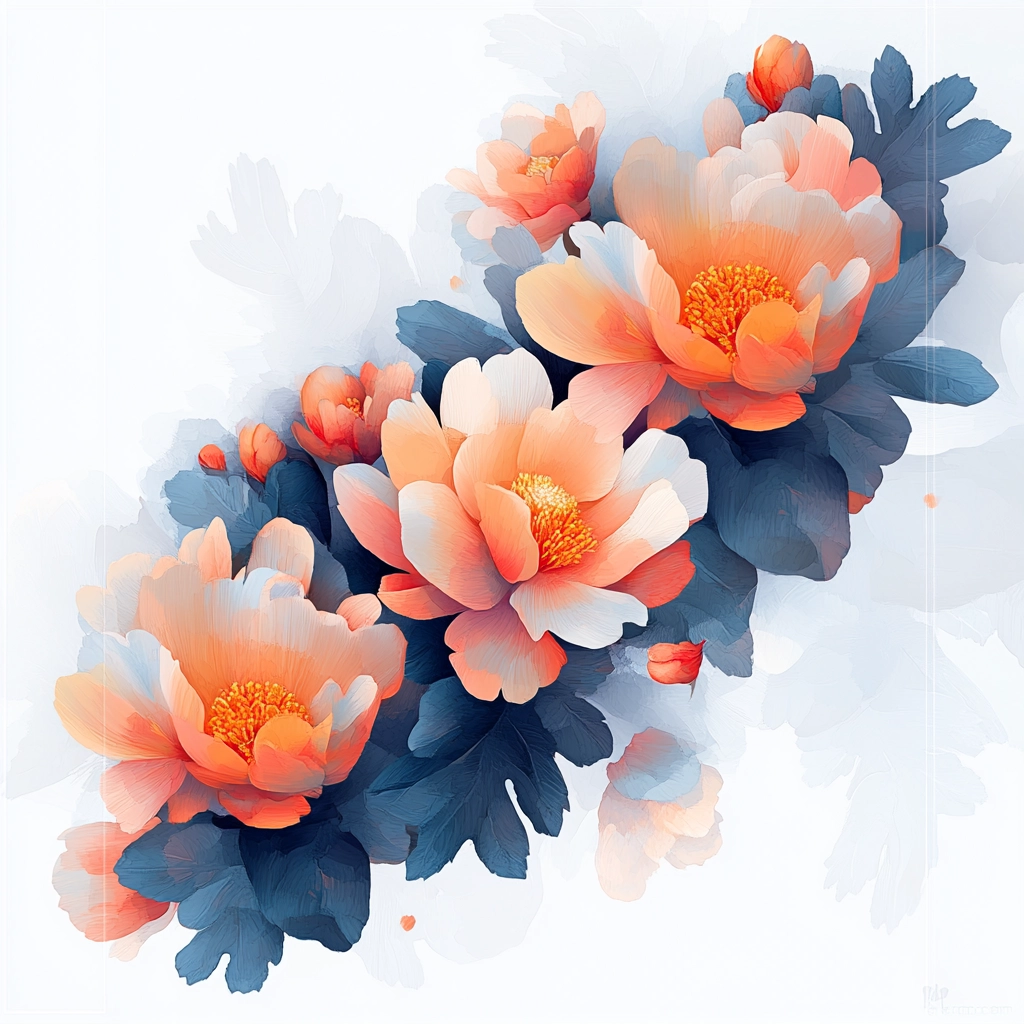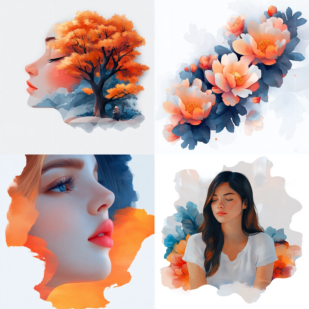 The lighting accentuates vibrant tones, creating depth and a sense of dimensionality through warm orange juxtaposed with cool blues. Soft textures and gradient transitions enhance spatial perception and add fluidity to the forms.