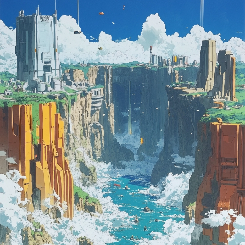 The lighting effects emphasize the depth and dimension of the scenes, creating dynamic contrasts between illuminated and shaded areas. Crisp, saturated colors enhance the vibrancy and clarity of the visuals, while the detailed textures add to the realistic yet stylized representation of vast spaces.
