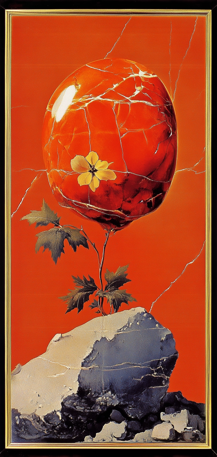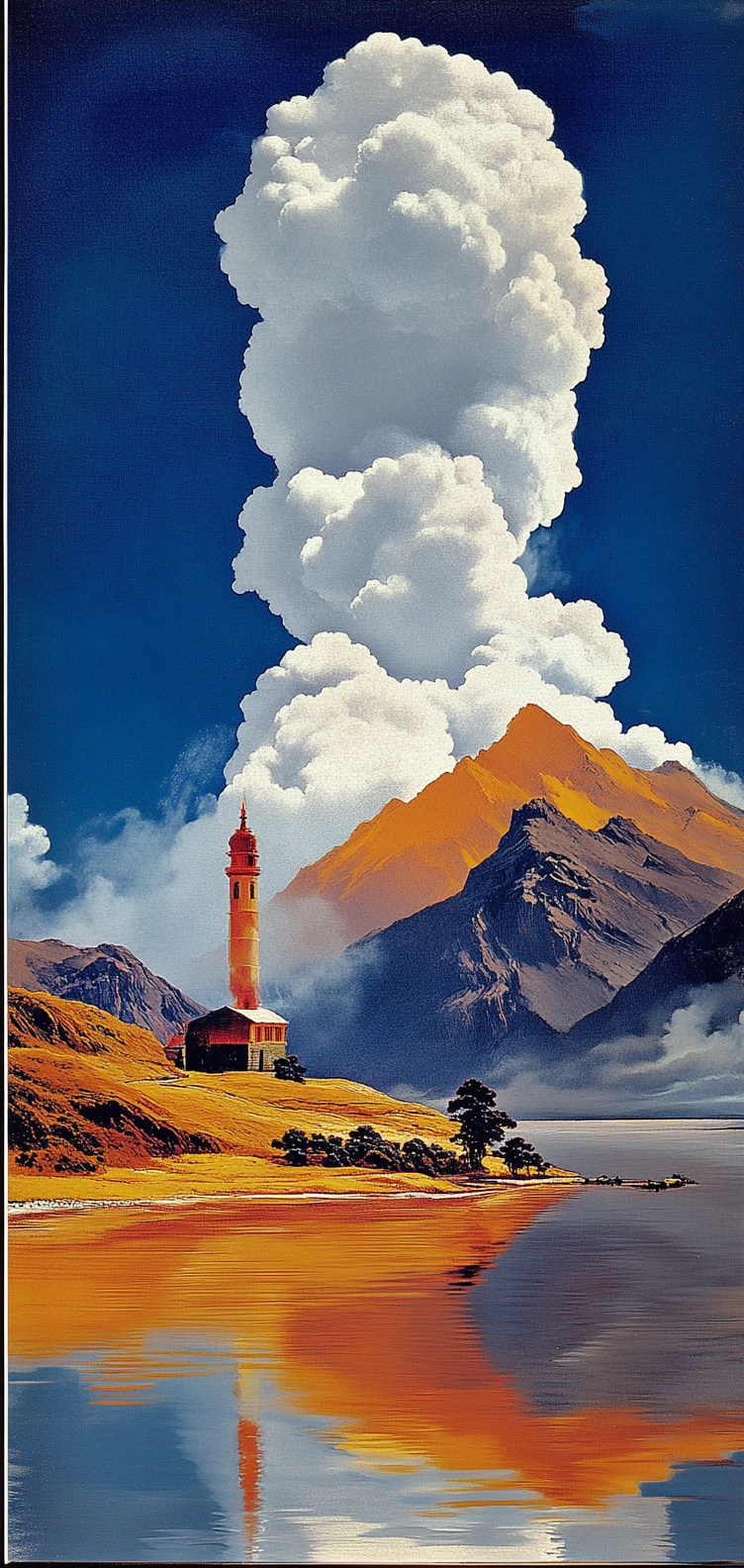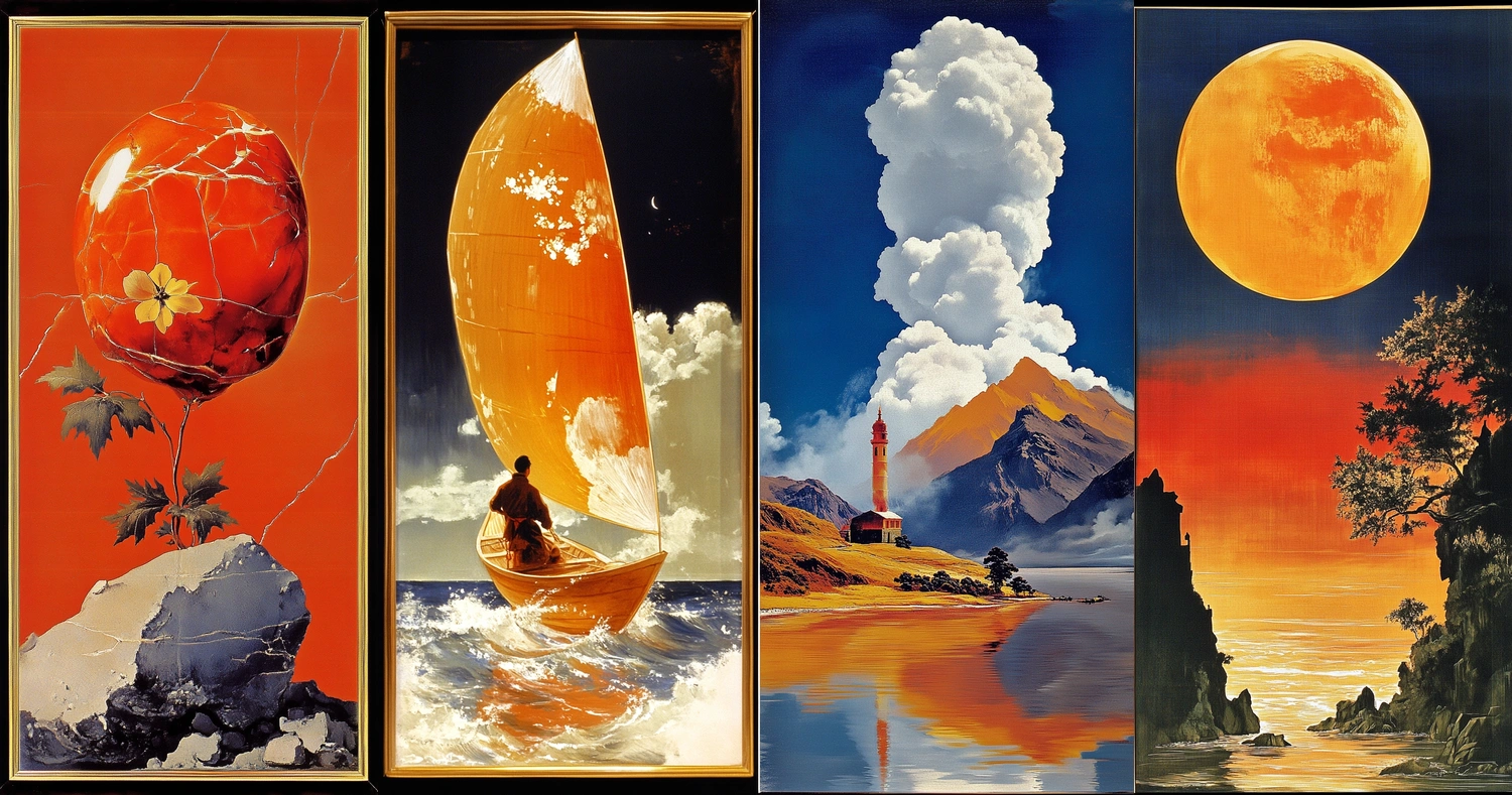 The interplay of bright orange hues and deep blues enhances the vibrant lighting effects. The scenes feature rich textures and a dynamic sense of depth accentuated by the stark color contrasts.