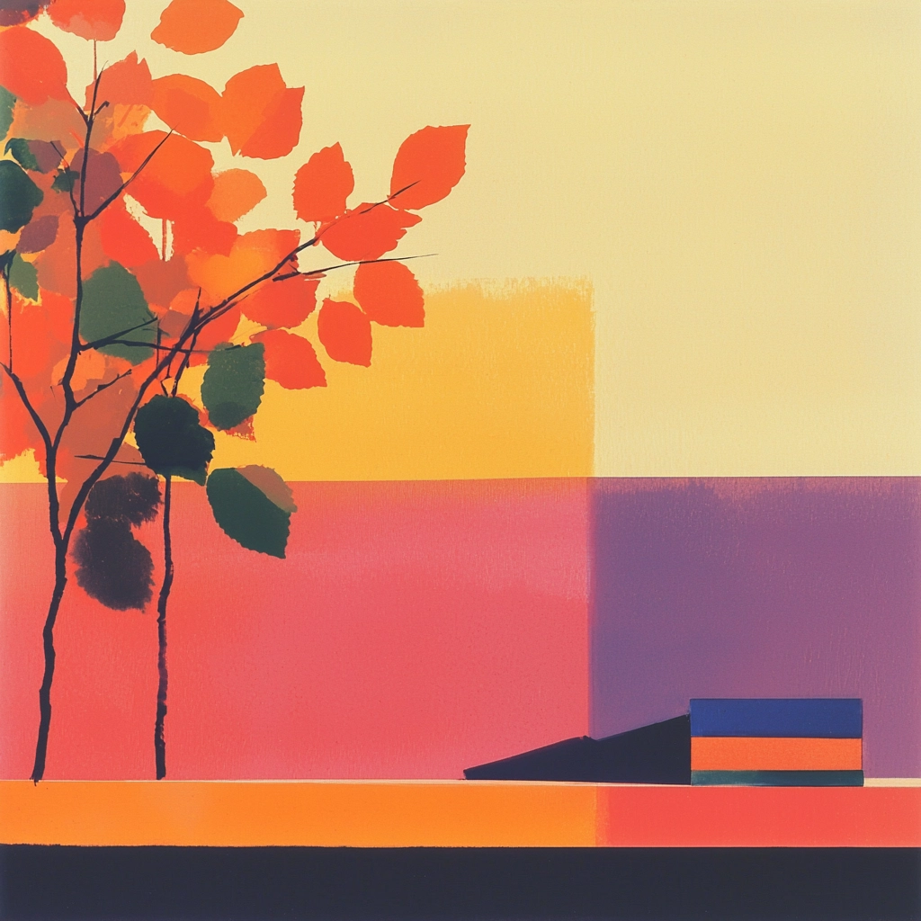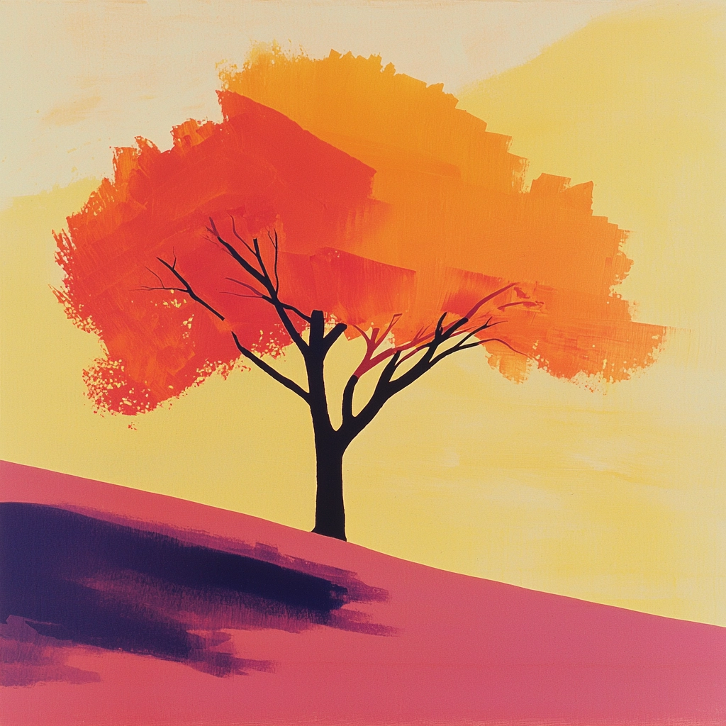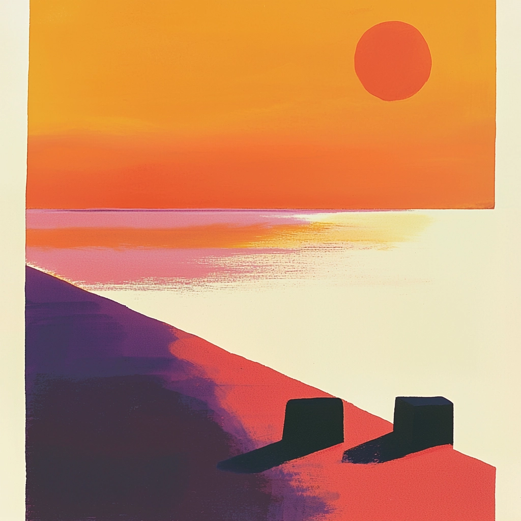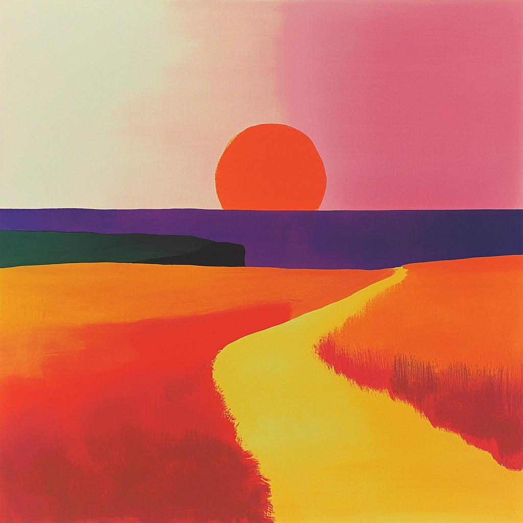 Bold, gradient hues create a vibrant warm-tone landscape.