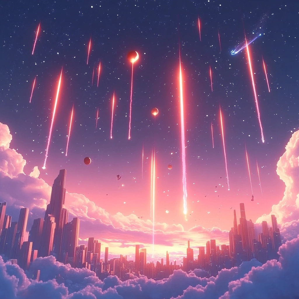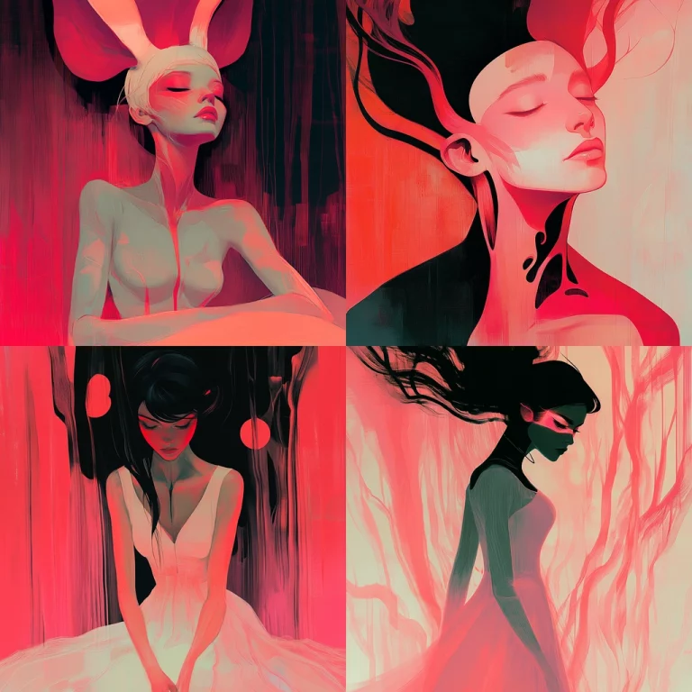 Vibrant hues with an emphasis on glowing pinks and blues.