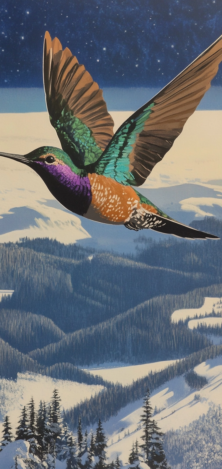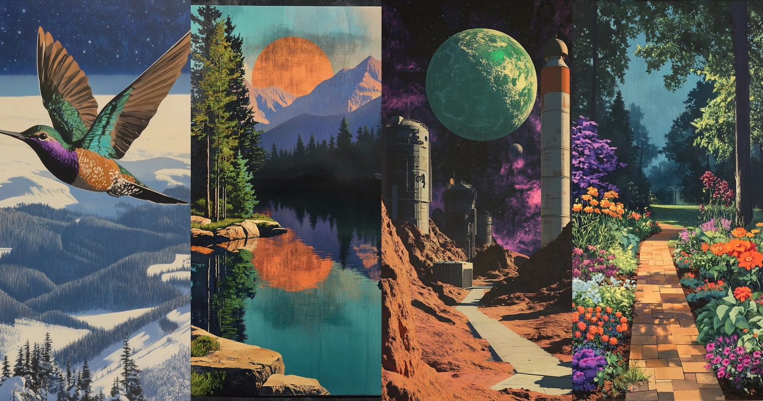 Vivid color usage combines with detailed and imaginative landscapes.