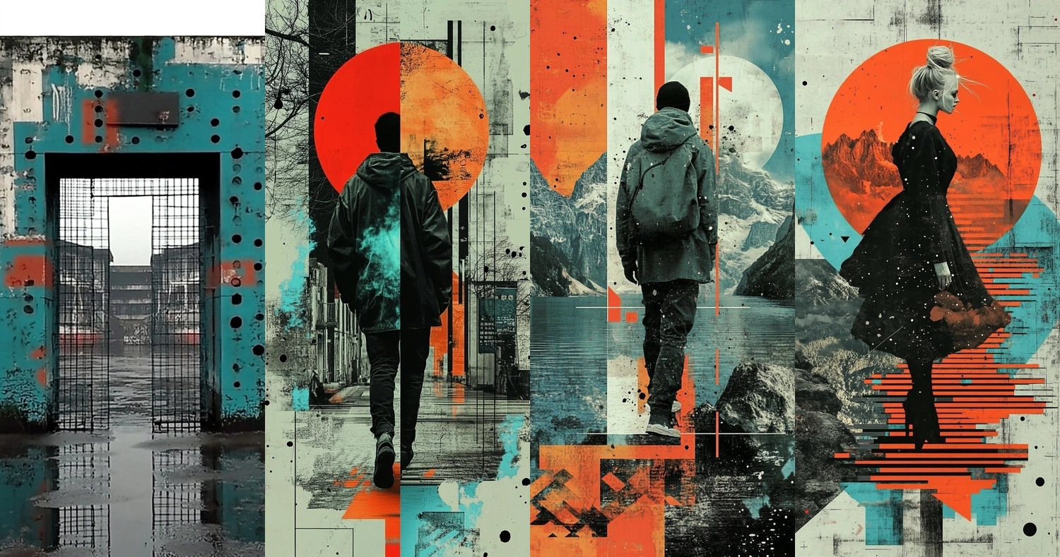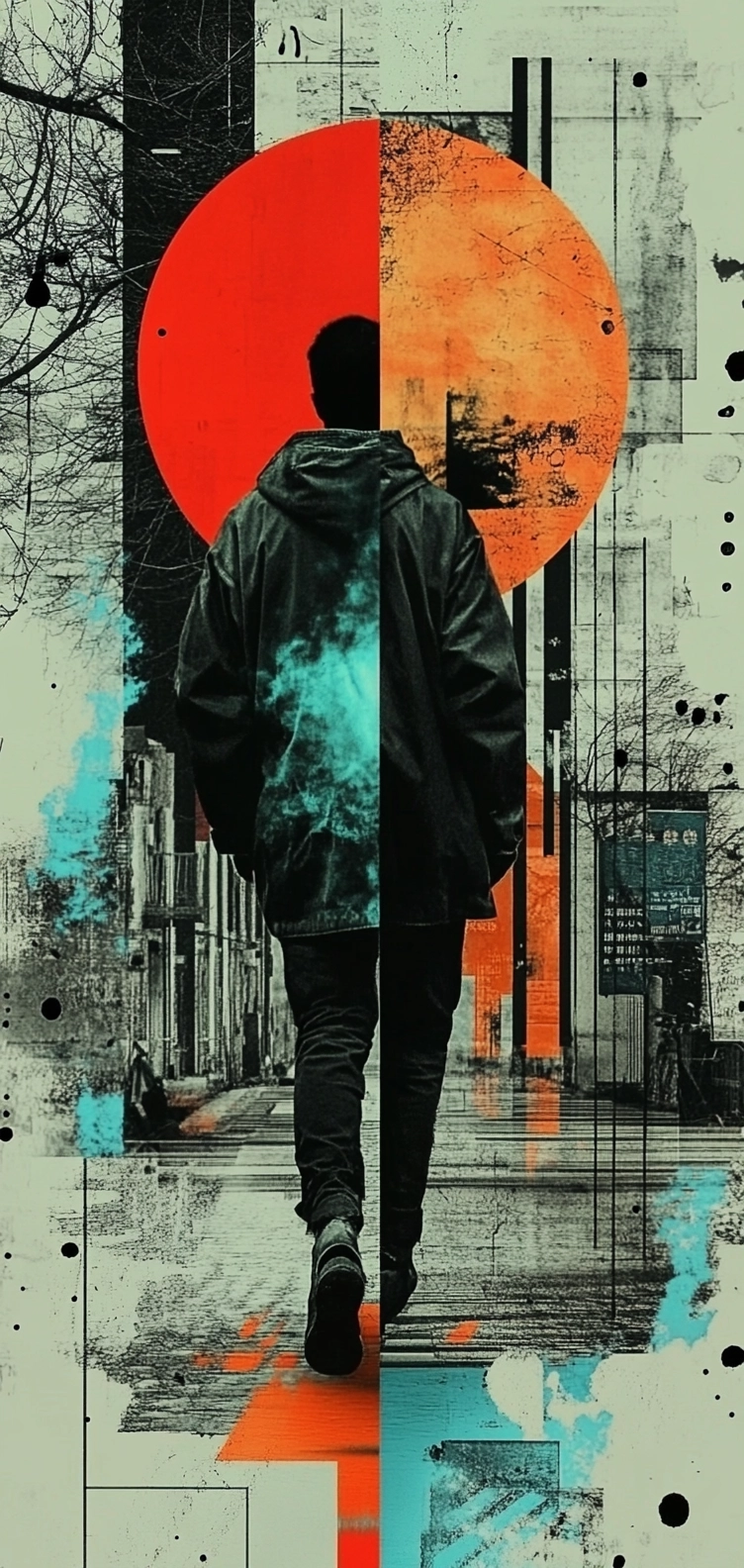 A dynamic combination of vibrant hues and urban scenery.