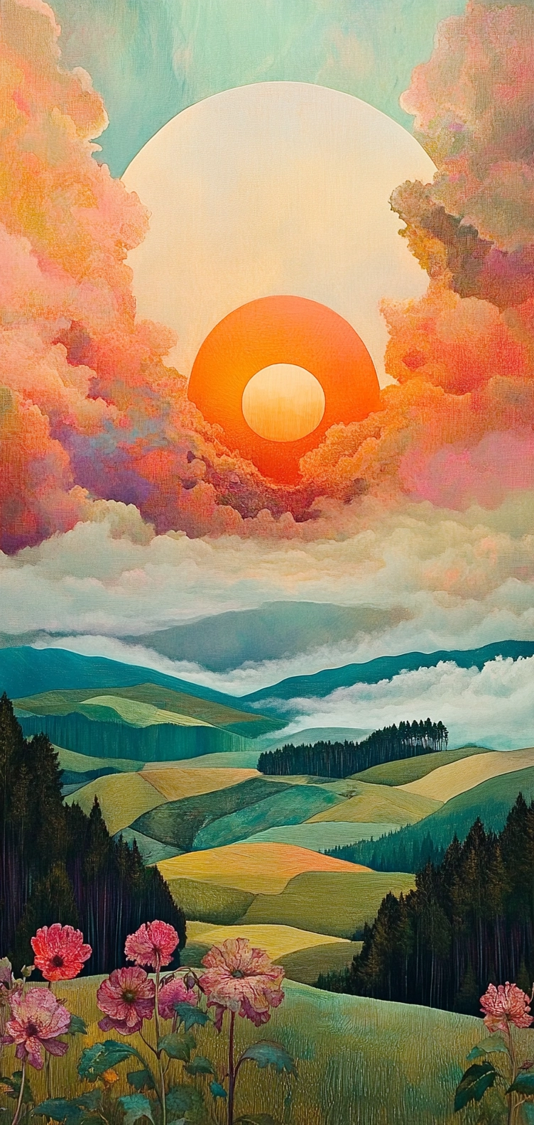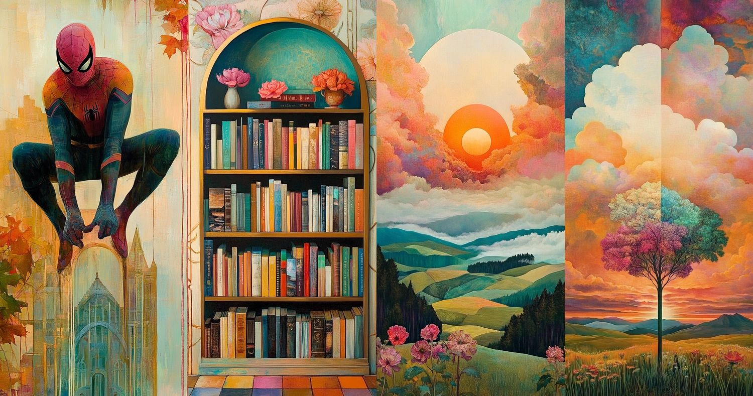 Dynamic, vivid compositions with warm, blending colors.