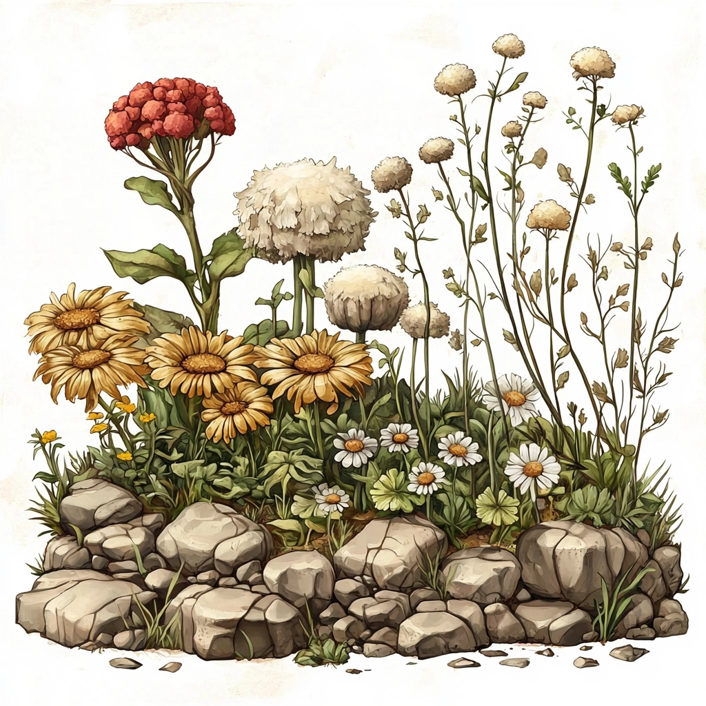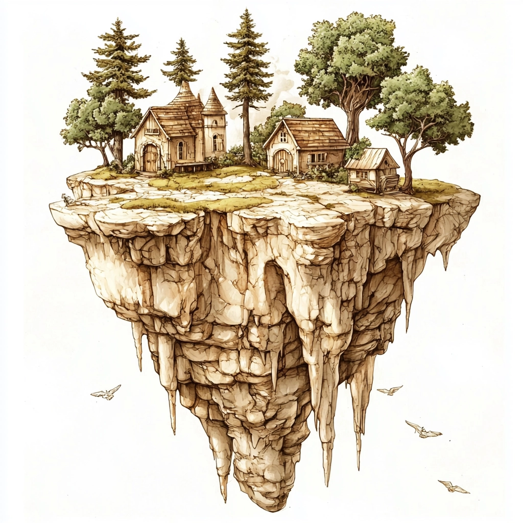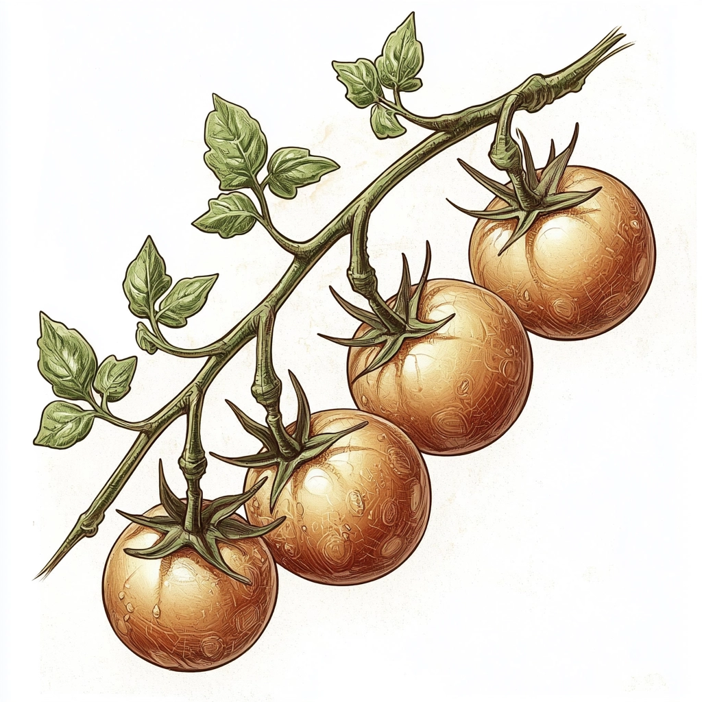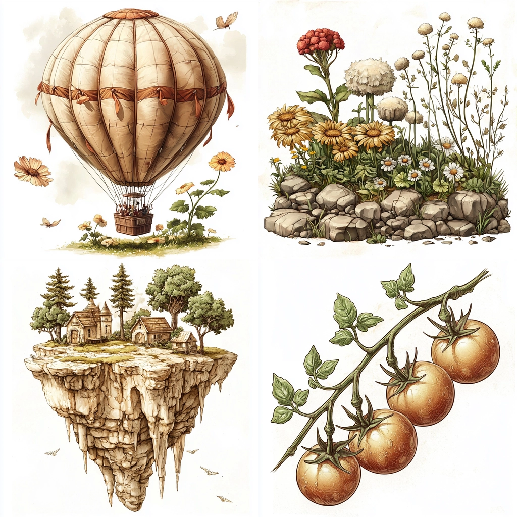 The illustration features delicate lines with warm, earthy brown hues that create a sense of nostalgia. Green accents provide freshness amidst detailed textures and shading, which emphasize depth and dimension without overwhelming complexity.