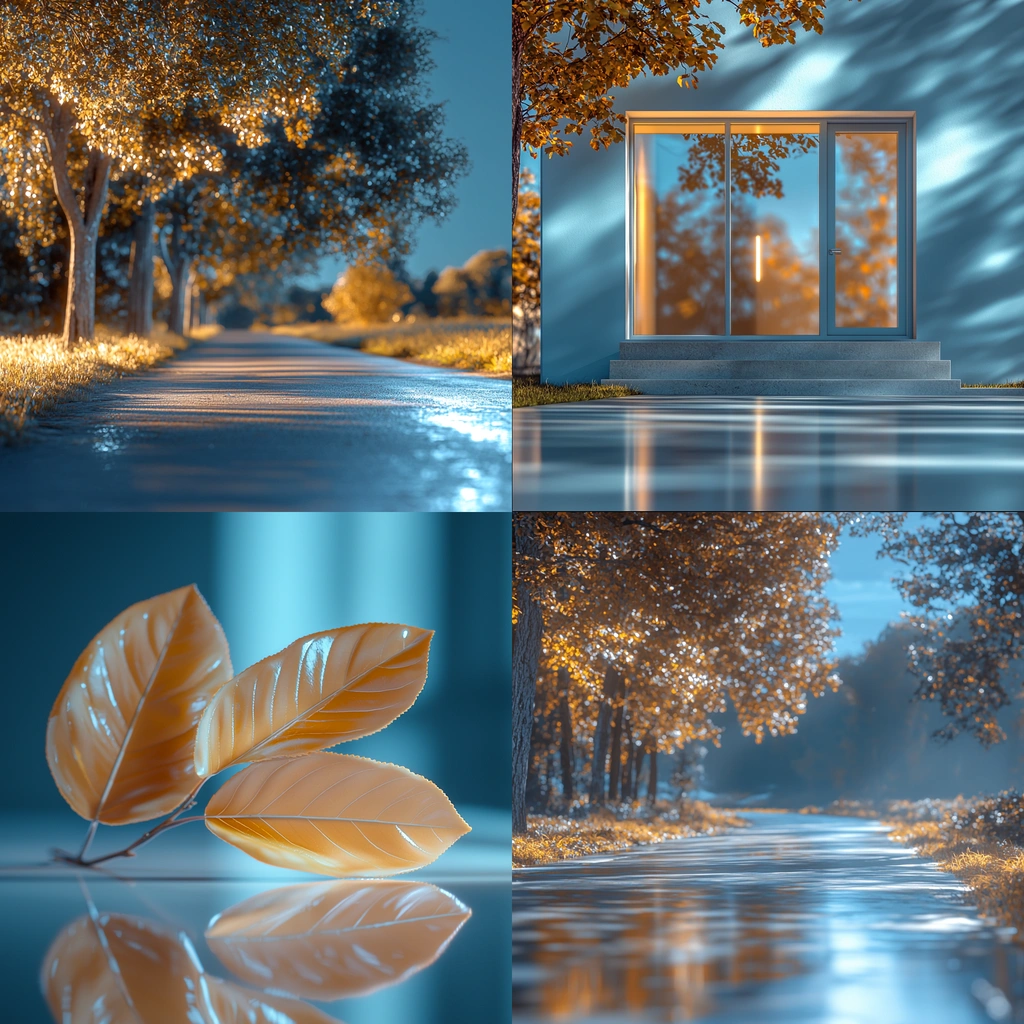 Subtle lighting effects create dynamic reflections, enhancing both depth and vibrant hues. The textures appear glossy with clear, defined edges, while the spatial composition promotes an organized visual rhythm.