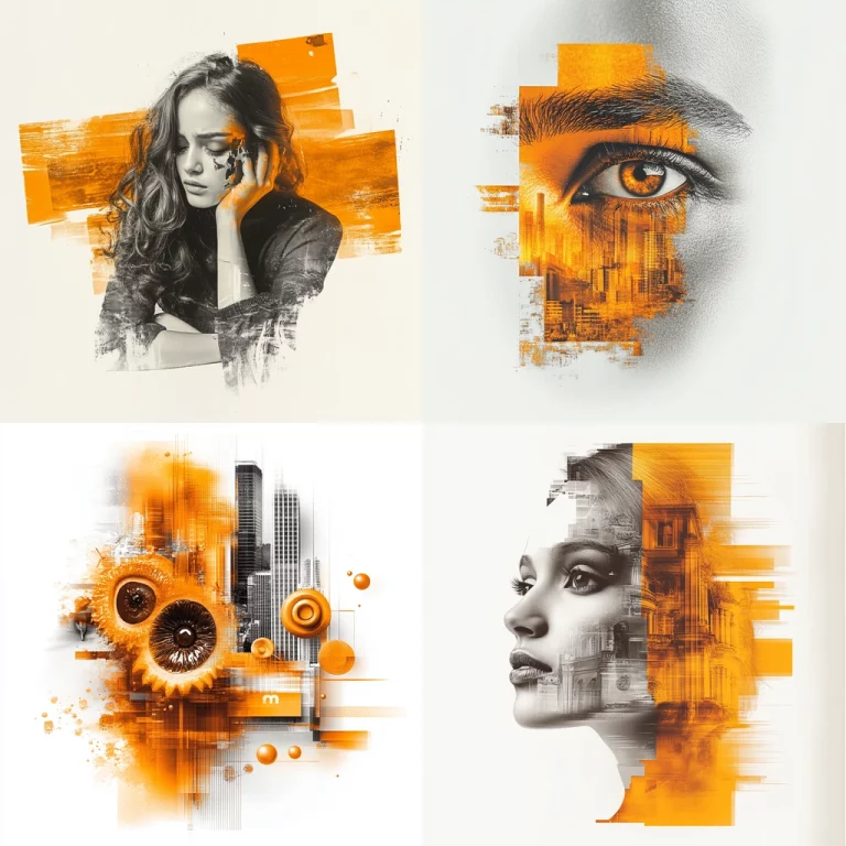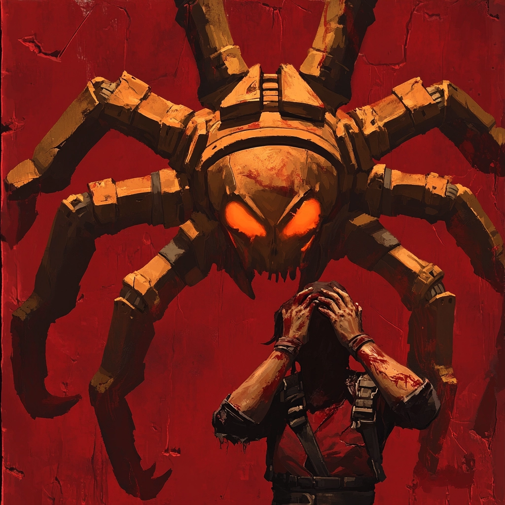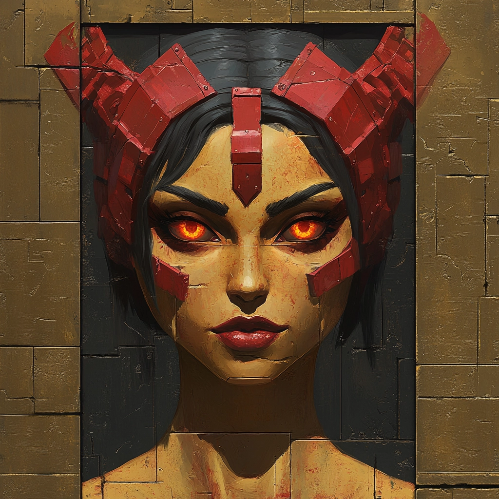 The use of vibrant reds and warm gold tones creates a dynamic visual composition full of depth.