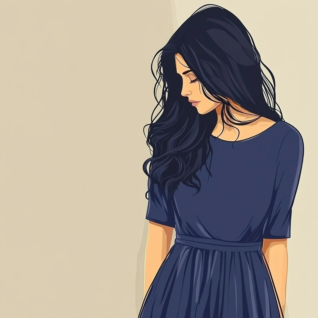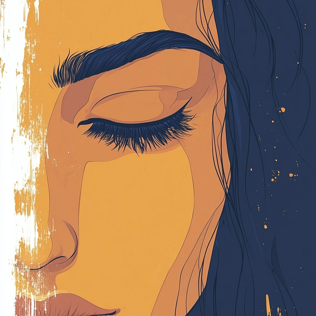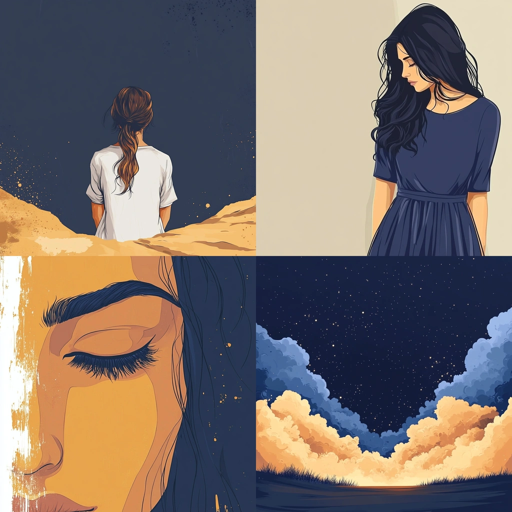 The use of warm beige and yellow alongside deep navy blue creates a striking visual balance. Lighting emphasizes contours and adds dimensionality, while textures are smooth, enhancing clarity.