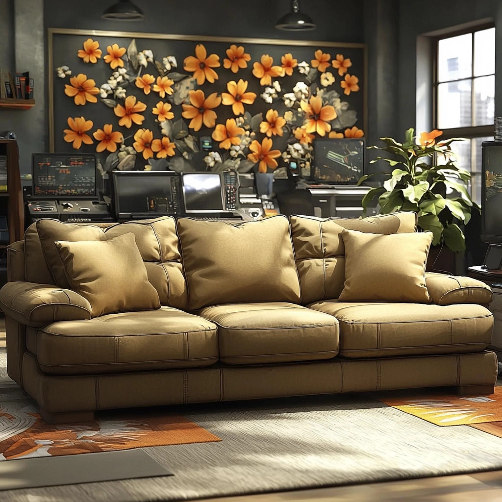 A careful balance of warm, earthy tones with dynamic and contrasting elements lends depth and intrigue.