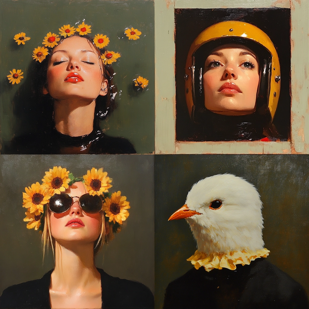 Illumination is carefully controlled to focus on the contrasting yellow elements, offering a sense of depth. The use of natural textures aligns with a realistic portrayal, while dark backgrounds enhance the focus and bring warmth into relief.