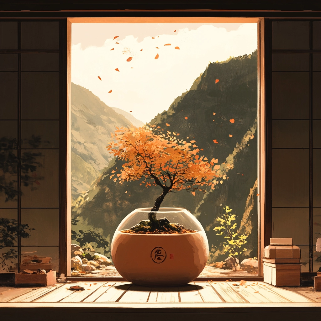 The composition employs warm hues with natural lighting creating a harmonious and inviting atmosphere.