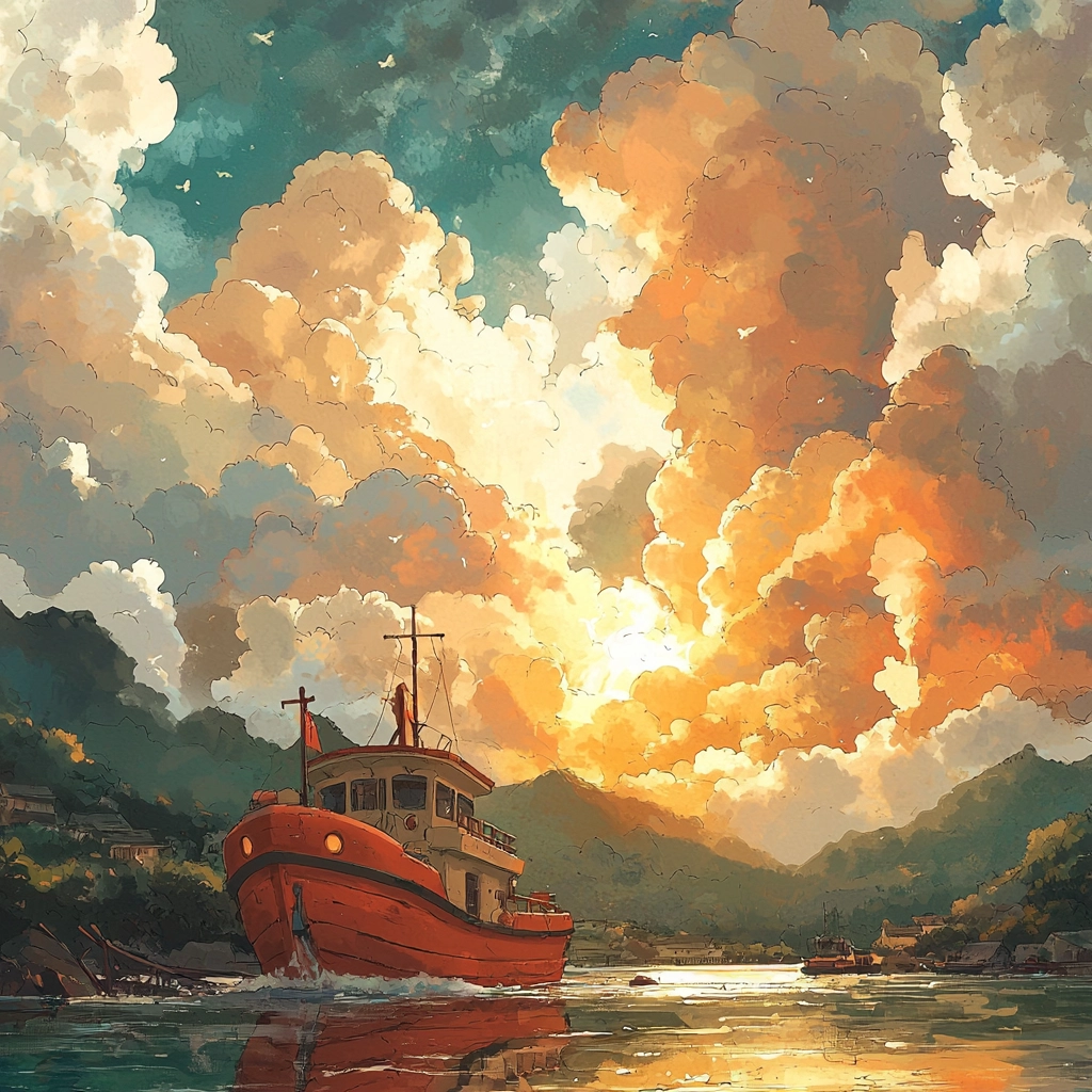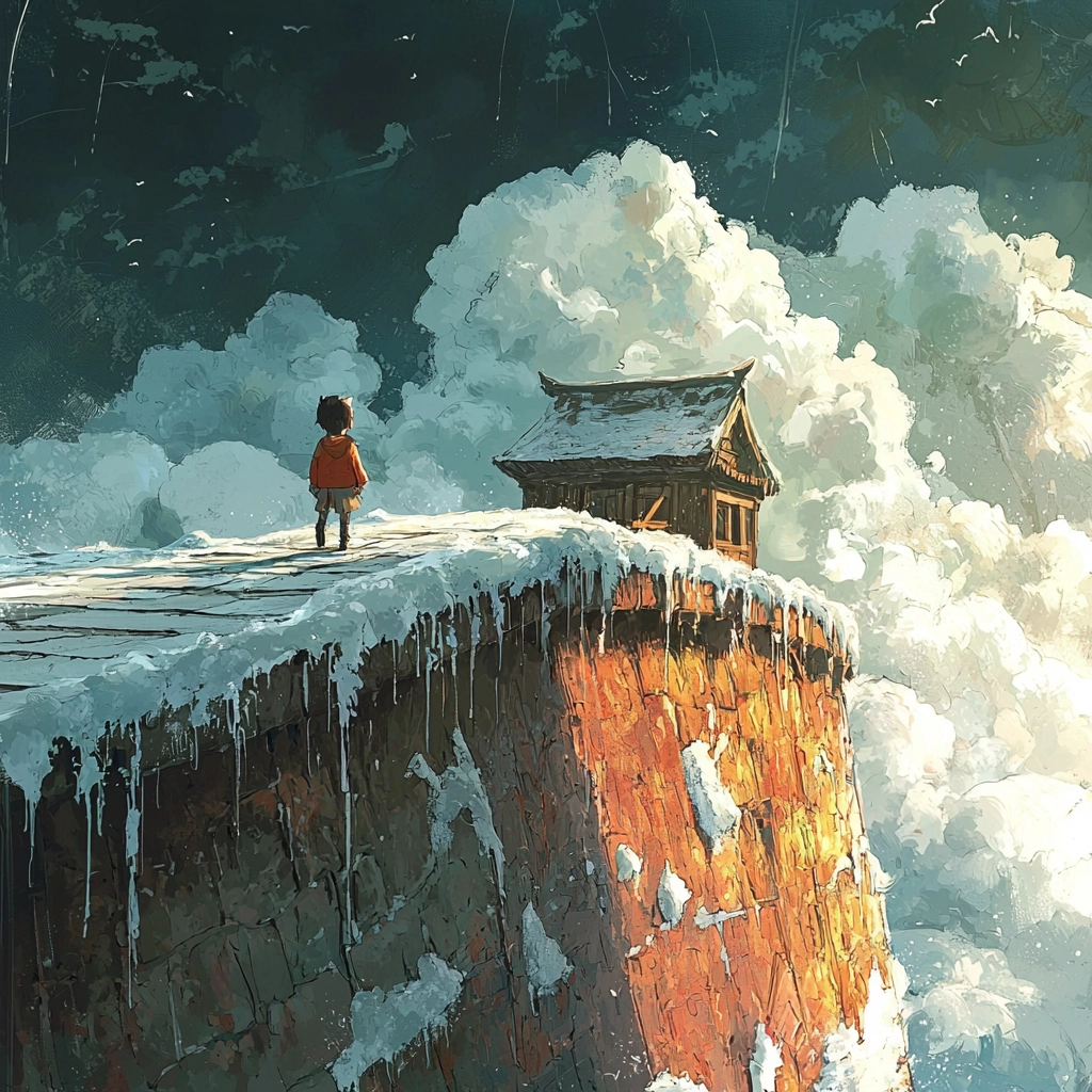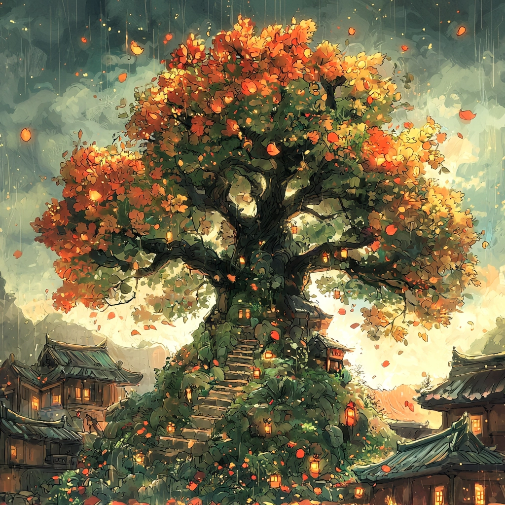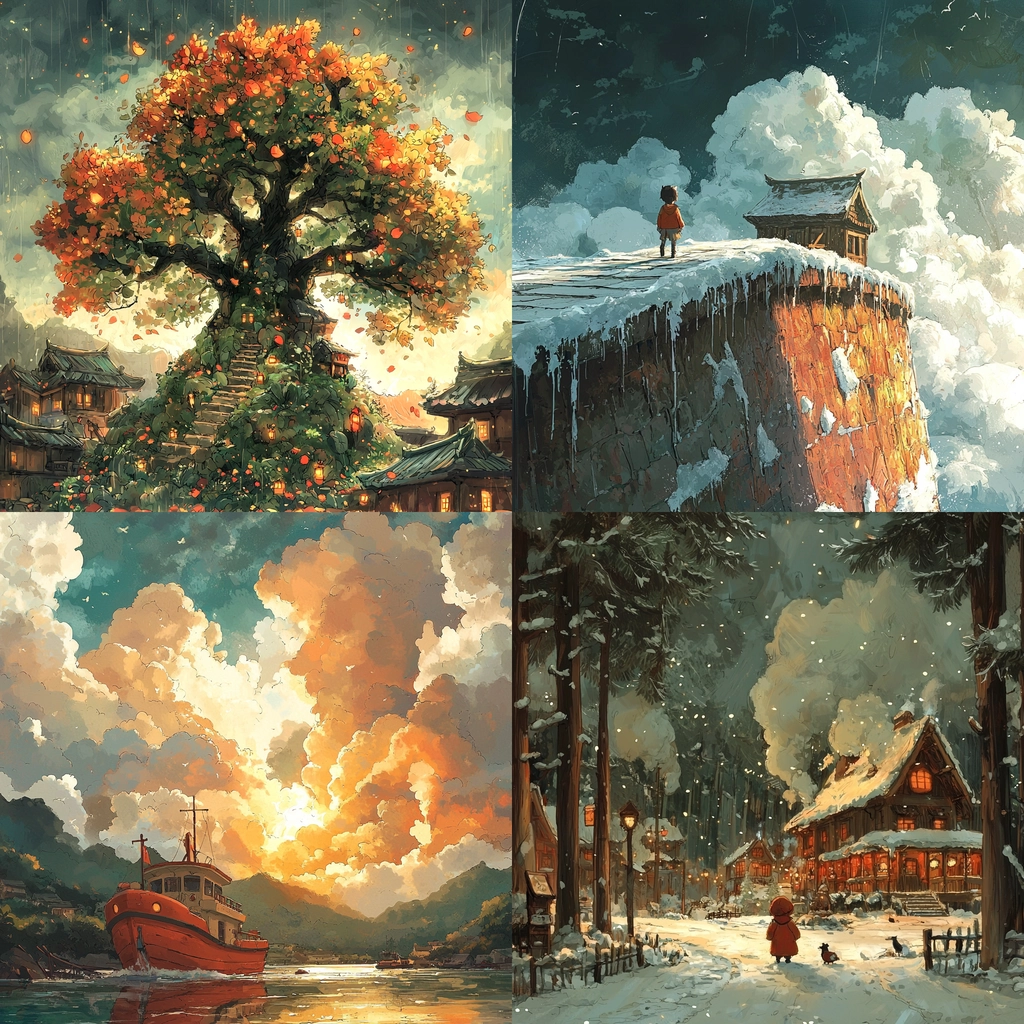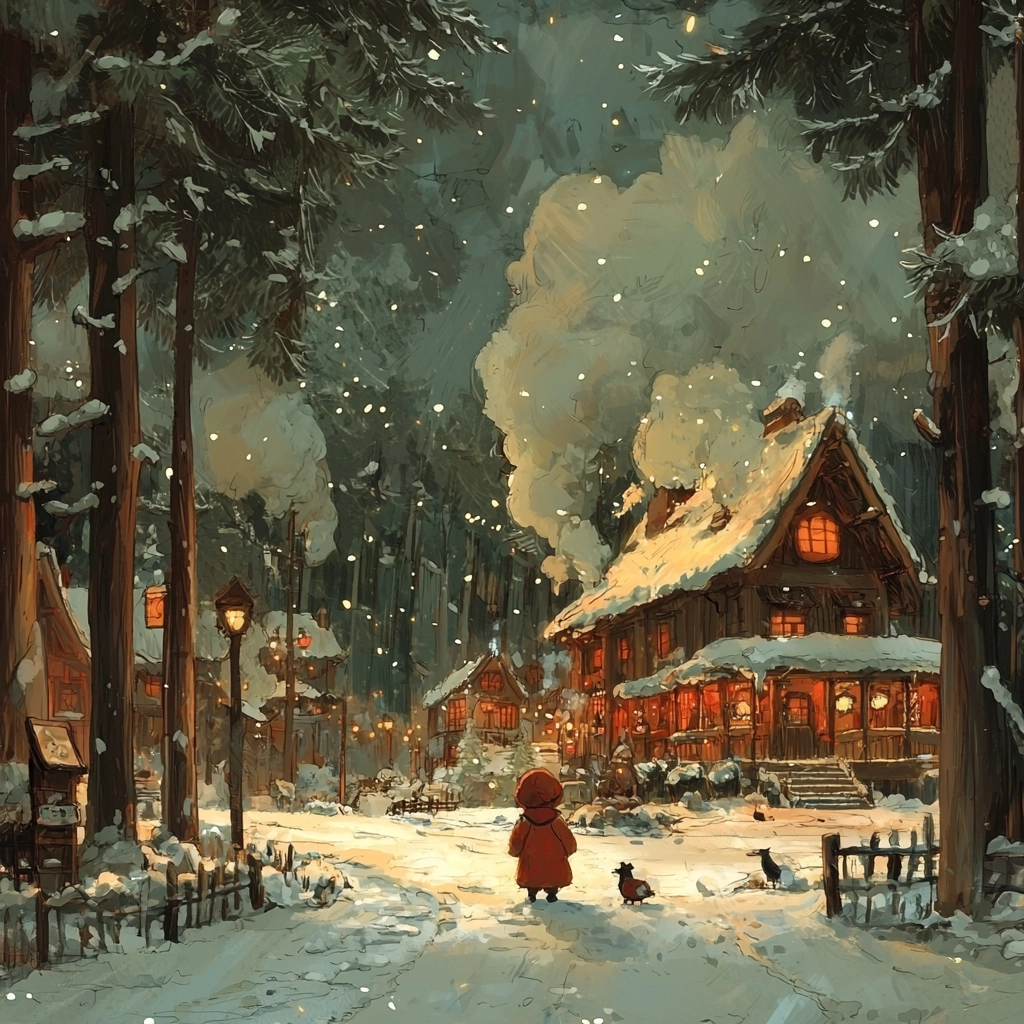 Soft pastels with rich textures and layered depth, creating a scene of warmth and familiarity.