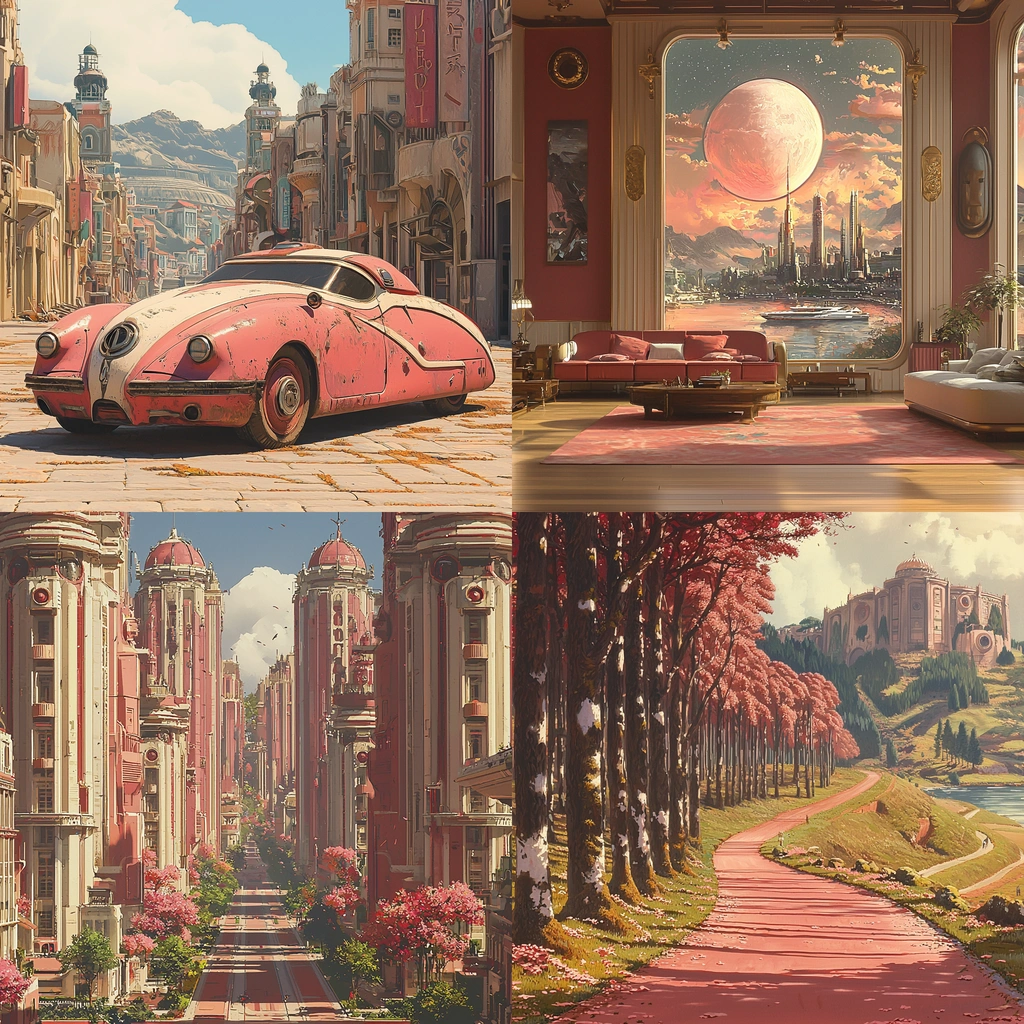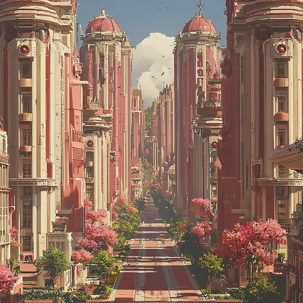 Soft lighting emphasizes a balance of shadow and radiance, enhancing the warmth of pink and beige tones. Textures blend smooth surfaces with intricate detailing, creating depth and a gentle spatial clarity.