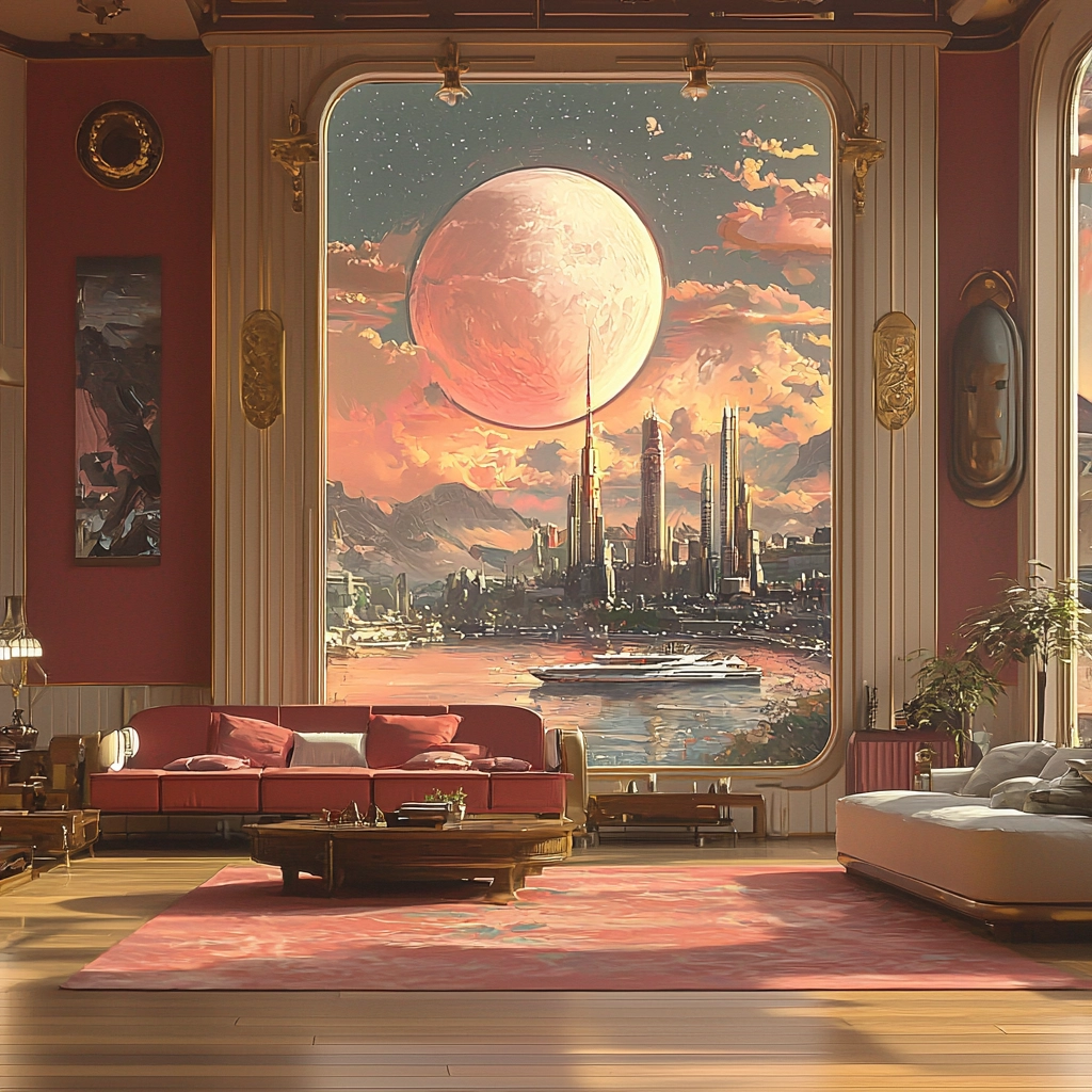 Blends warm midtones with intricate structures and luminous highlights to evoke harmony in design and setting.