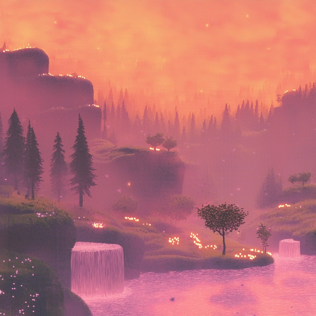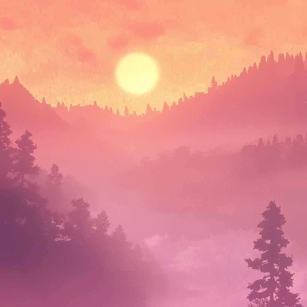 Delicate lighting effects produce a softening impact across the landscape, enhancing the visual depth with gradual transitions. The texture is smooth yet varied with gentle contrasts that bring out the color vibrancy.
