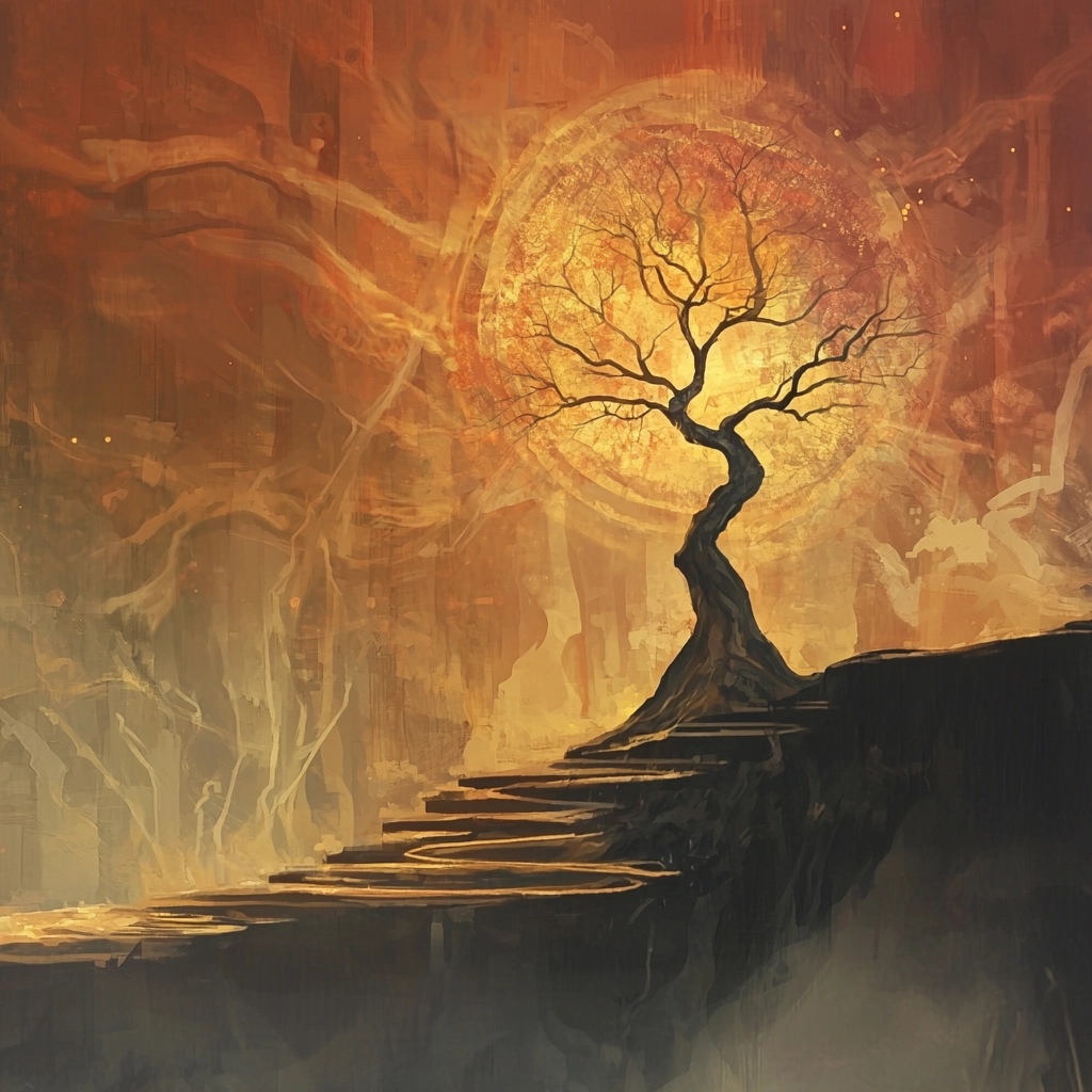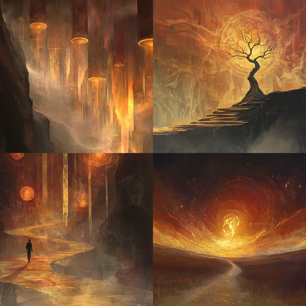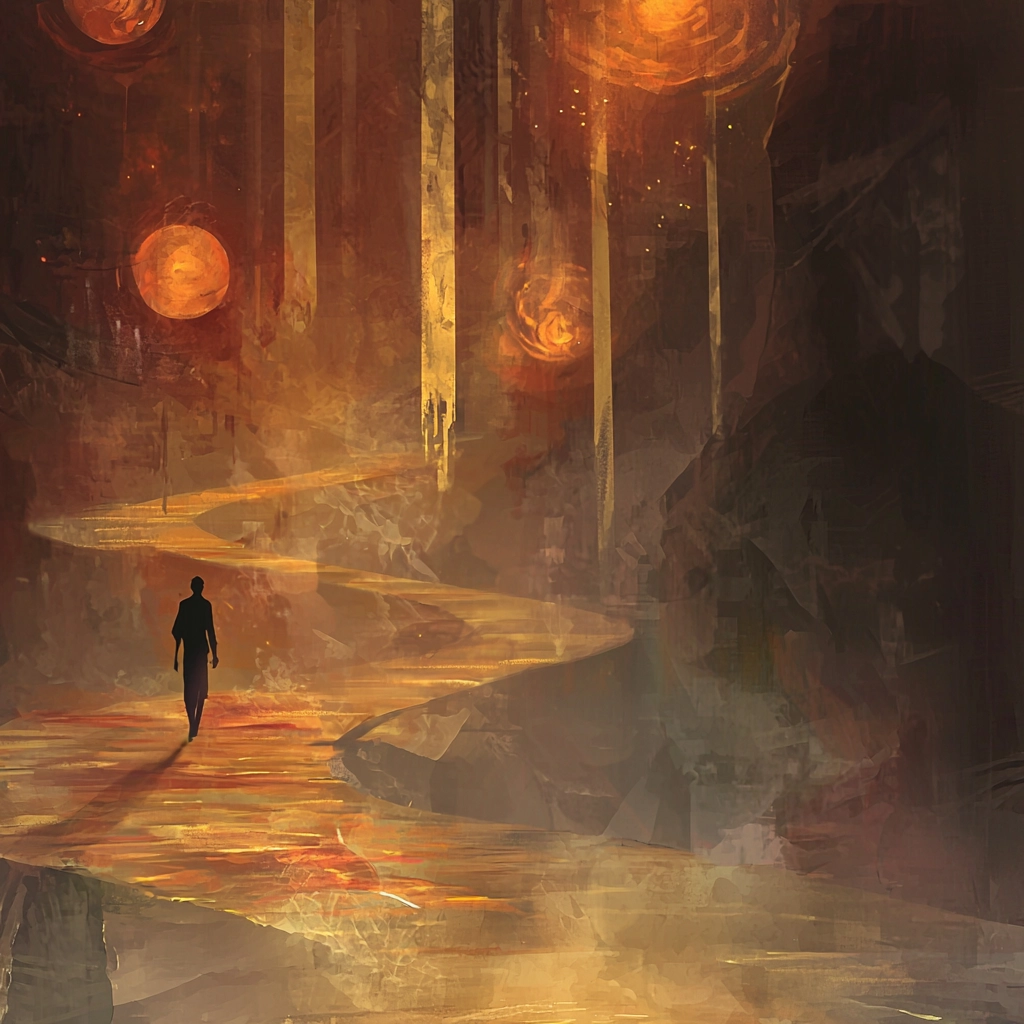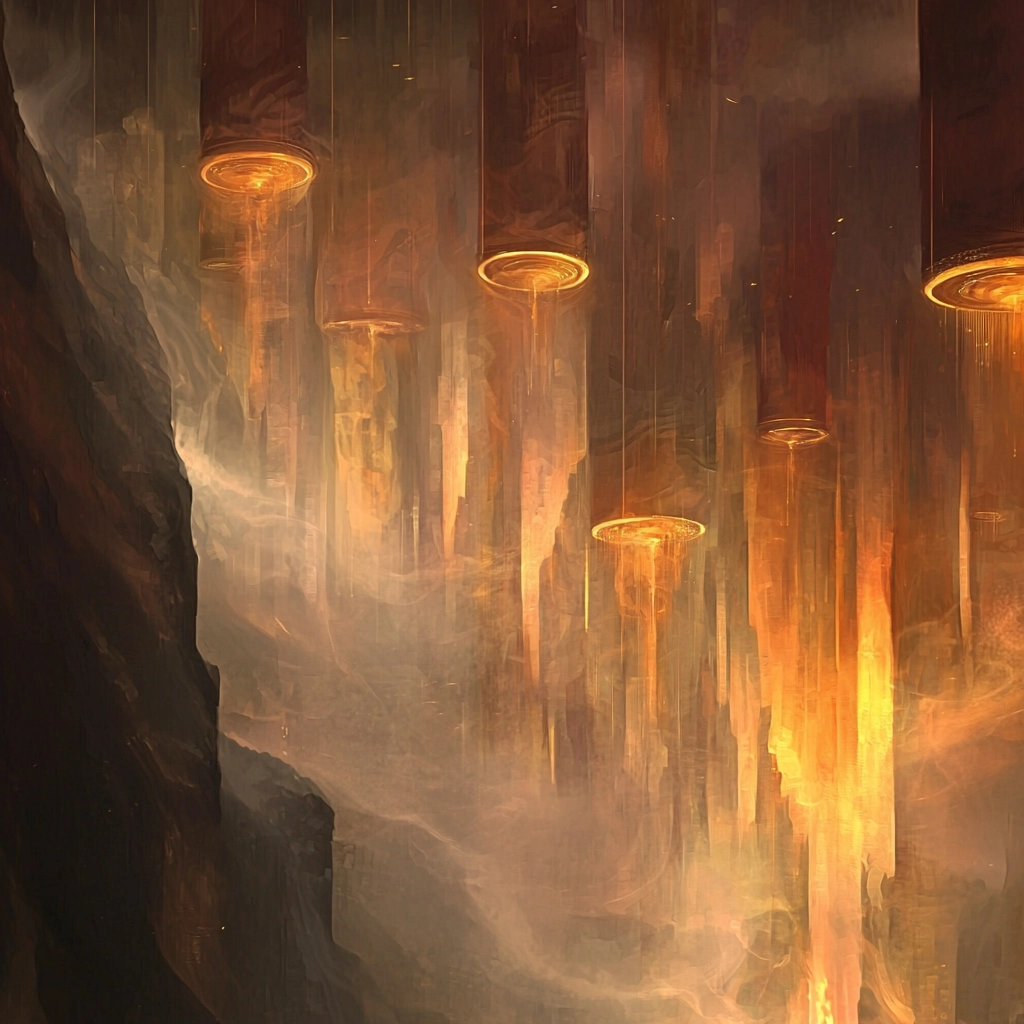 The use of golden hues creates a warm, inviting brilliance, contrasted by shadowy black elements that add depth. The textures feel smooth but with hints of uneven strokes, enhancing the glowing effect.