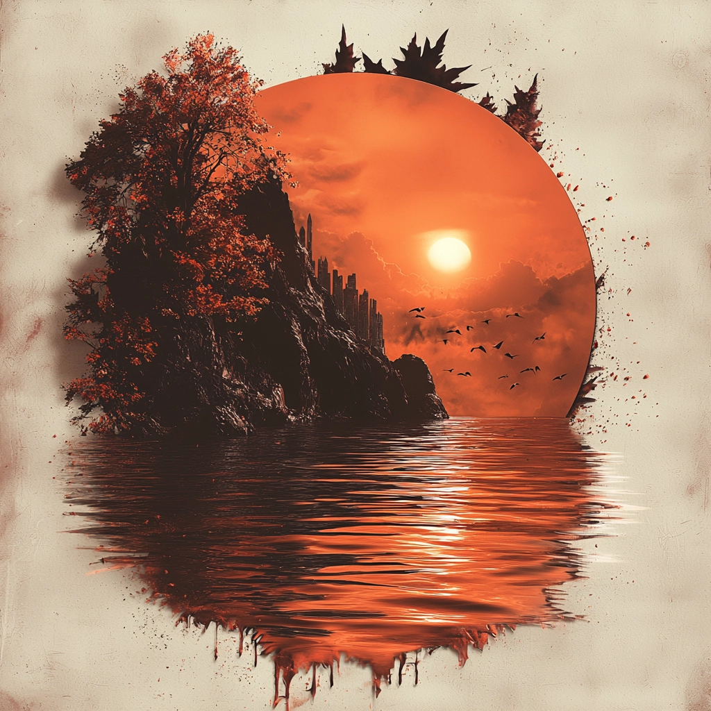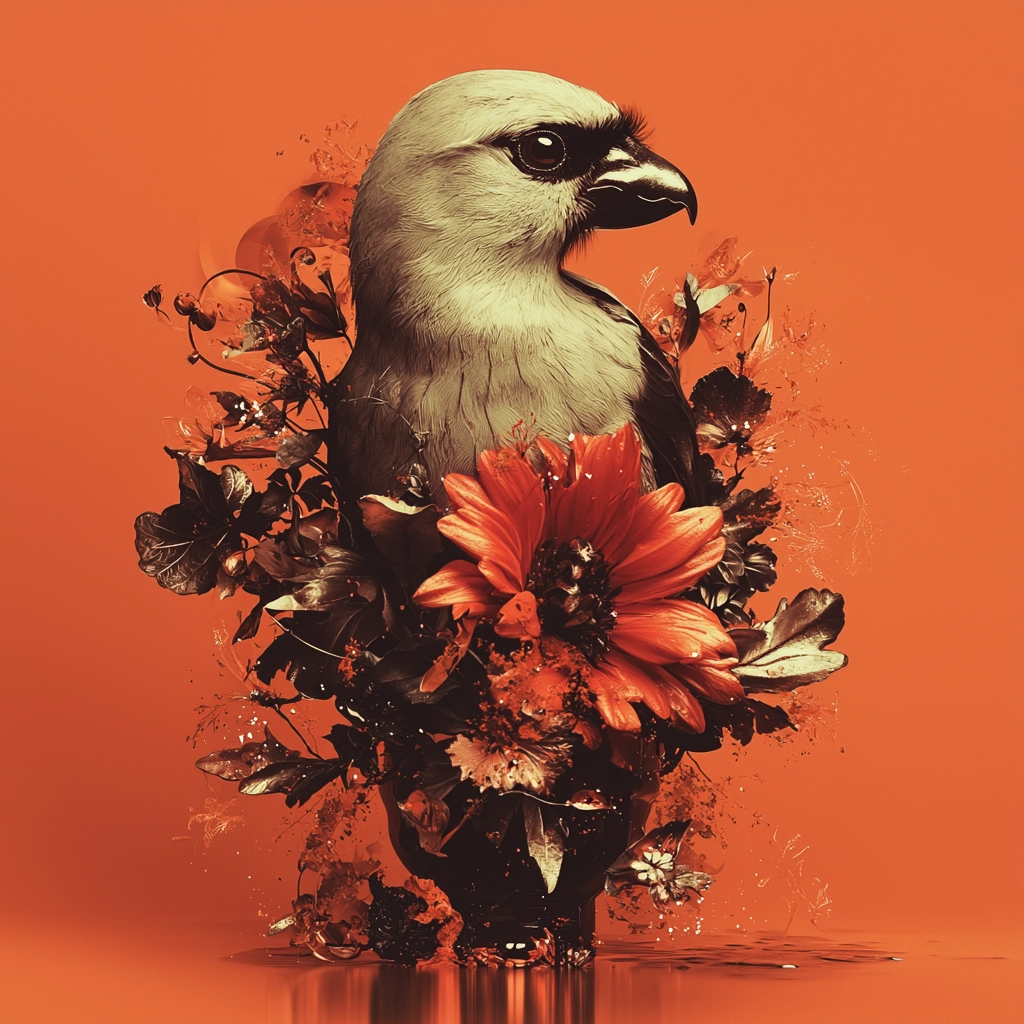 The composition utilizes warm colors and digital techniques, resulting in vivid and sharp imagery.