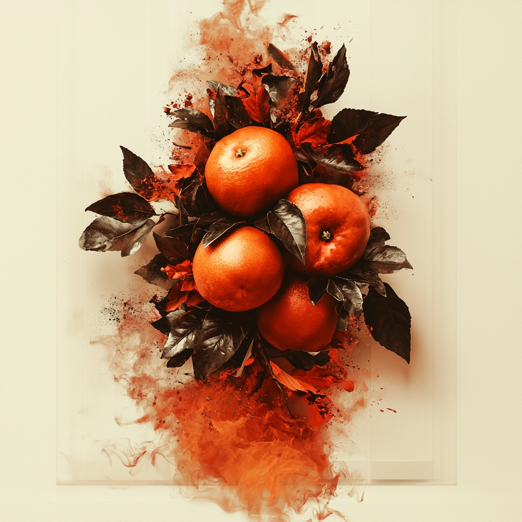 The lighting effects create a balanced contrast between the warm tones of orange and the dark hues, enhancing the visual impact. The colors are vivid with a gradient effect, while spatial sense is established through layered compositions. The texture is smooth yet detailed, emphasizing the digital nature.