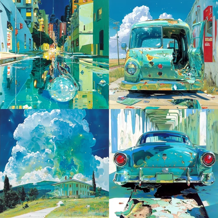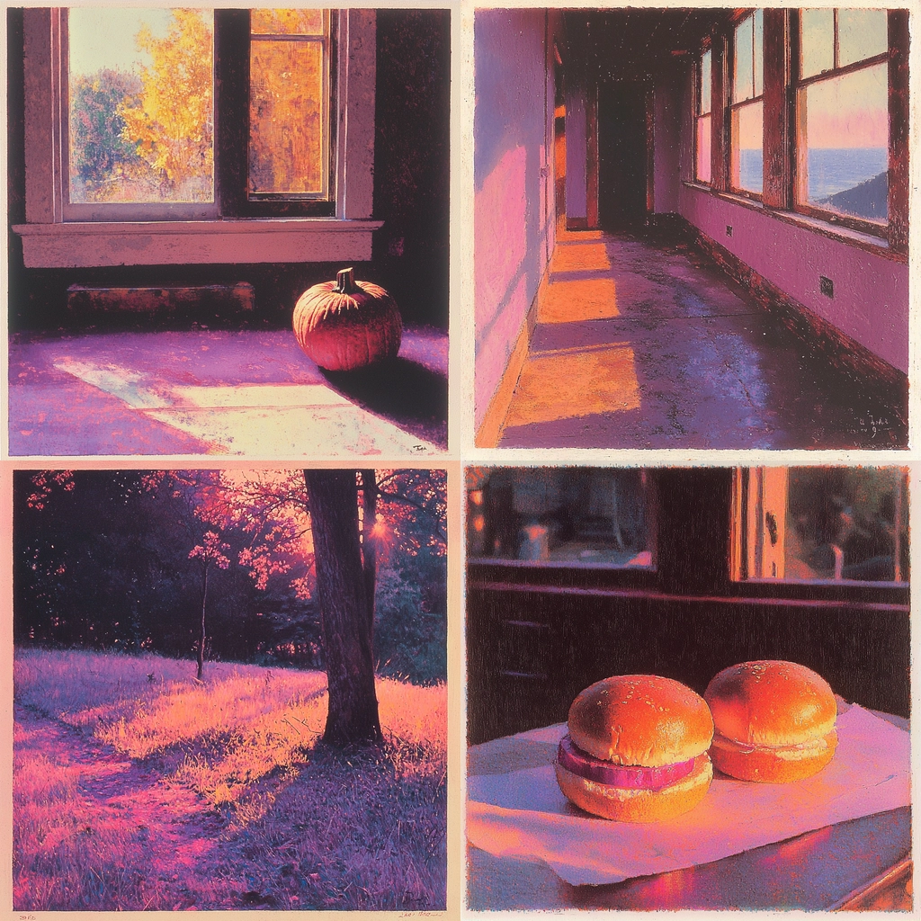 The lighting creates dynamic reflections and shadows, with color vibrancy evoking warmth and richness. The spatial sense is enhanced by soft gradients, while textures remain subtle yet detailed, offering a tactile impression.