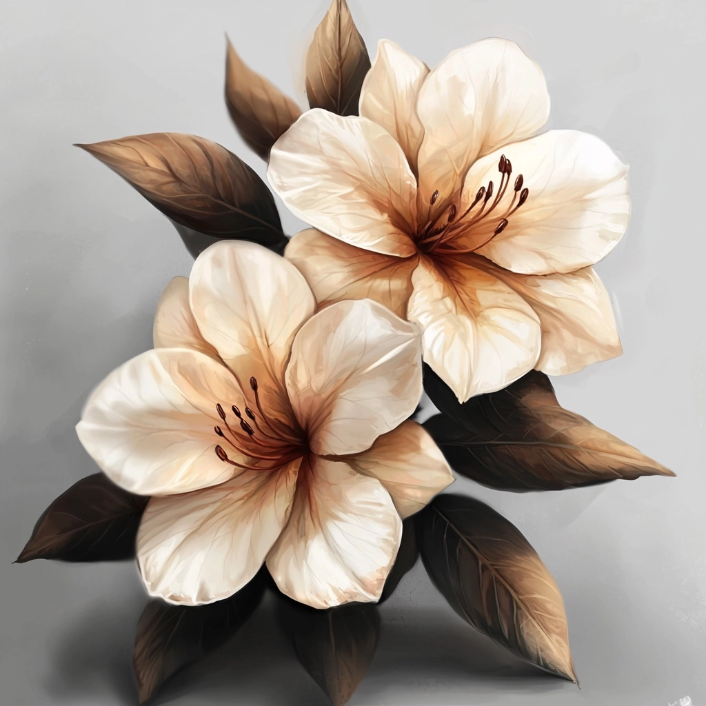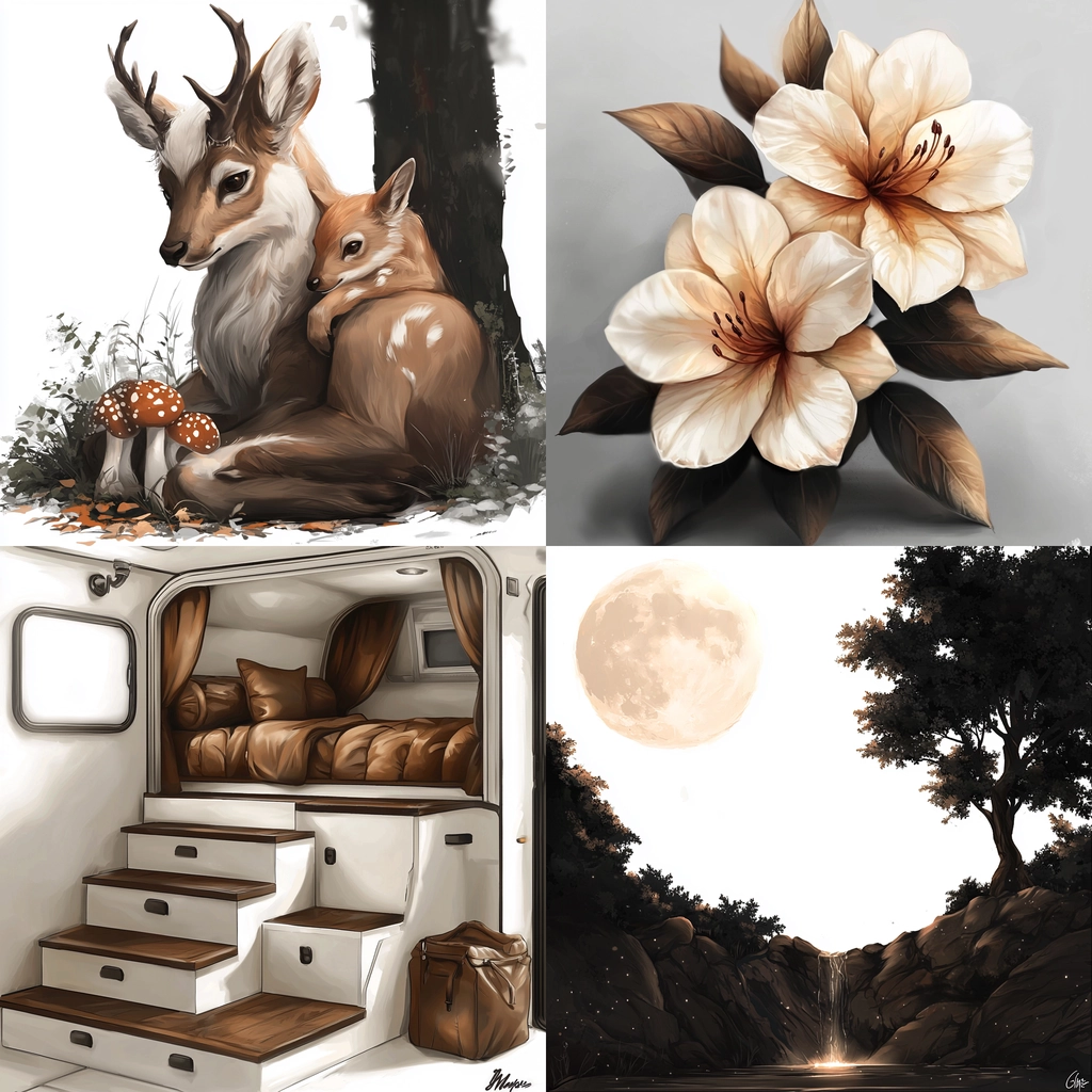 Rich brown hues are blended with crisp white and gray, resulting in vivid images with intricate shading and textural detail.