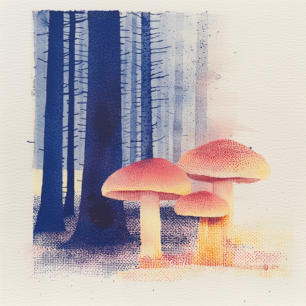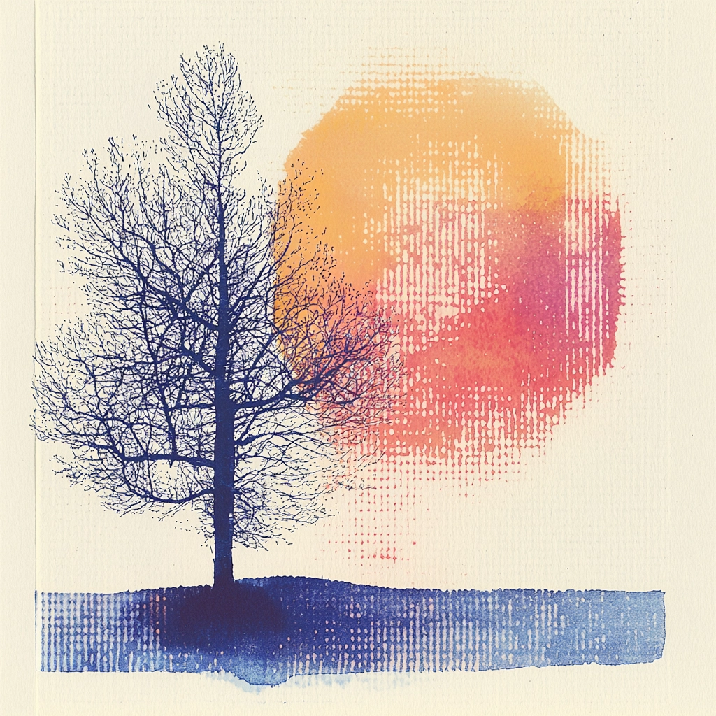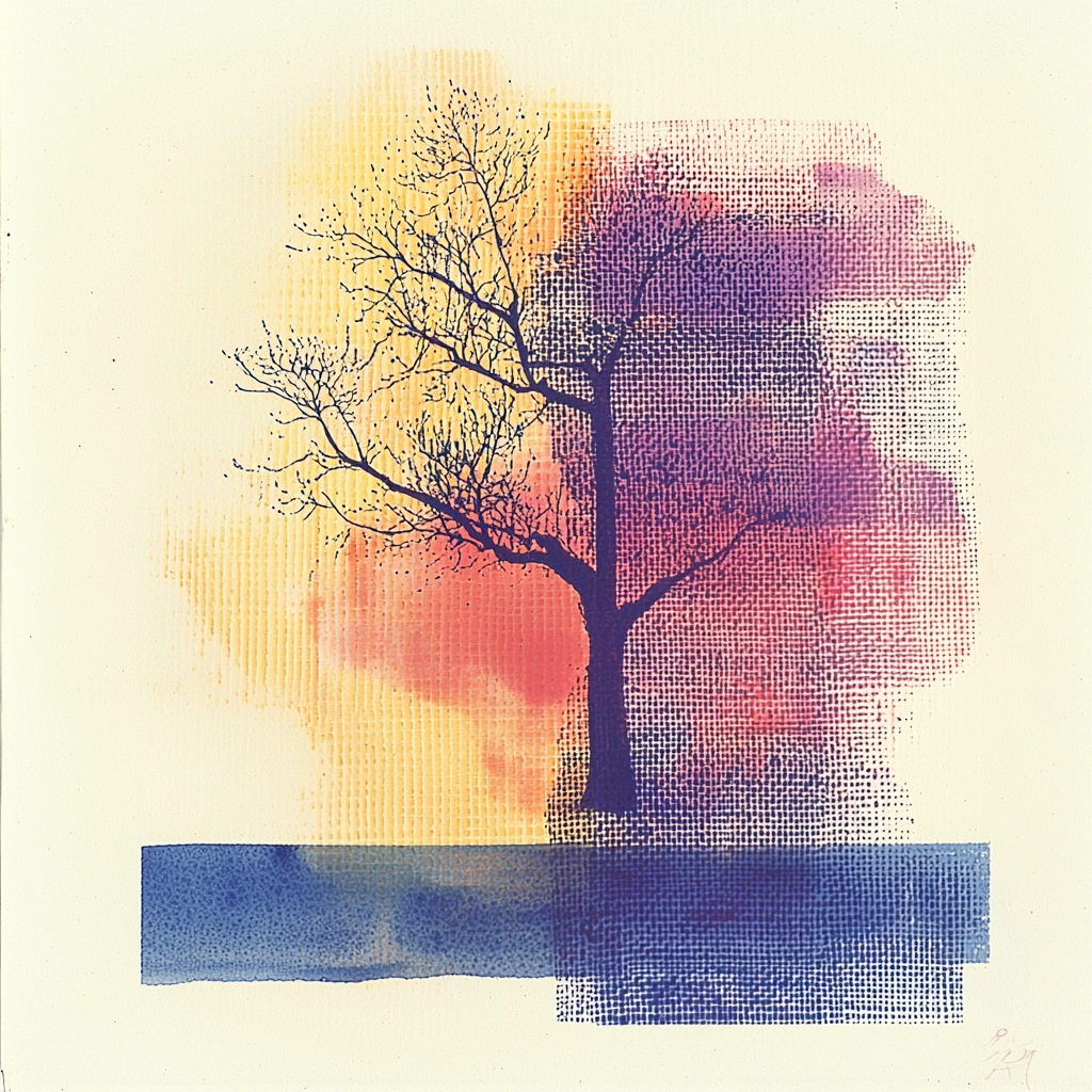 The composition uses warm shades to enhance textural depth.