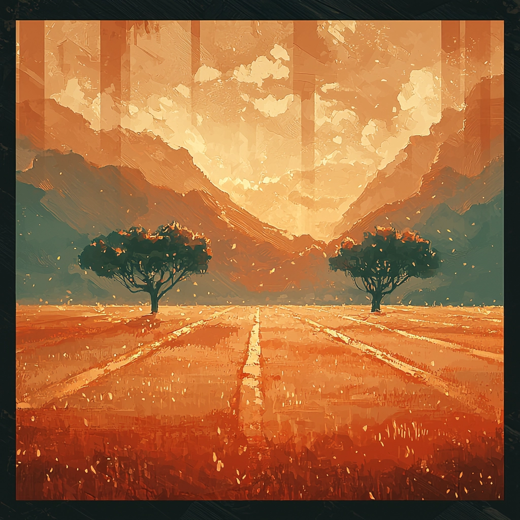 Strong lighting effects create a sense of both clarity and mystique through the deliberate use of color contrast and shadowing. Orange tones dominate, enhanced by textured brushwork that suggests depth and dimension. The spatial arrangement offers expansive perspectives with a tactile quality in the details.