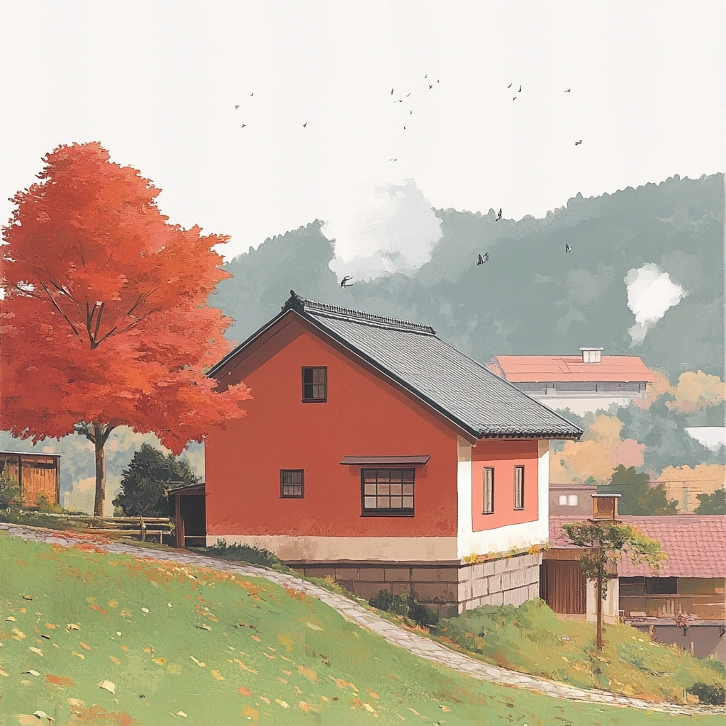 The lighting is soft and evenly distributed, creating a sense of calm and belonging. Colors are slightly muted yet vibrant, evoking a relaxing atmosphere. Textures are smooth with a touch of watercolor effect, providing a gentle charm to the composition.