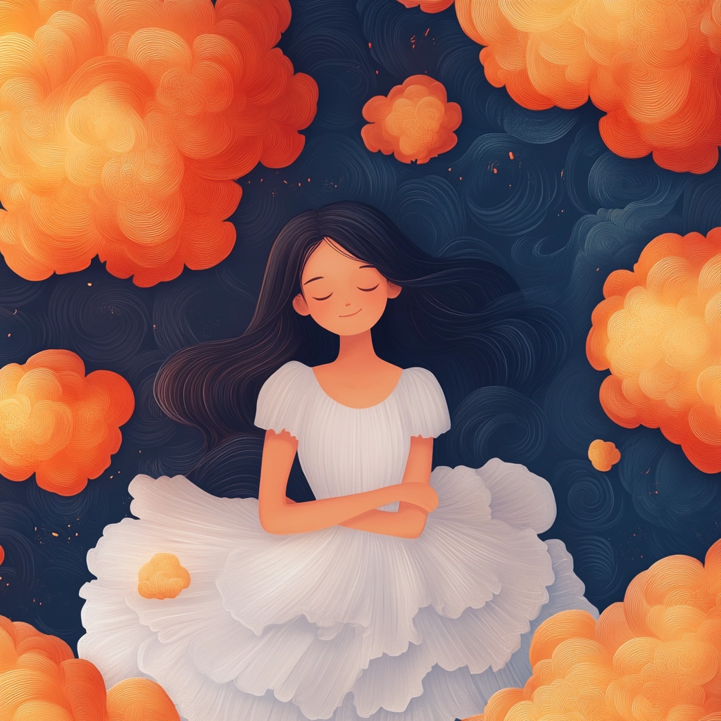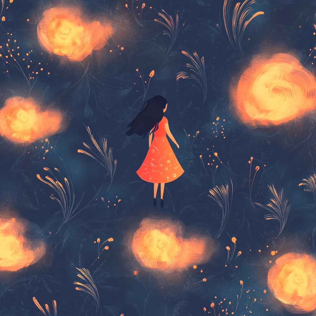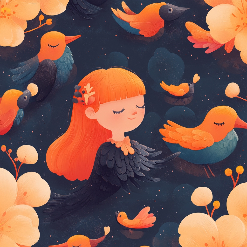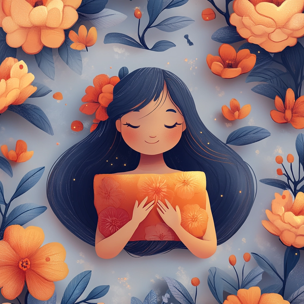 The bright orange contrasts with deep blue to create a dynamic appearance, enhanced by a soft glow that highlights the curves and edges, giving a lively energy. The composition encompasses a balanced interplay of light and shadow with a gentle texture.