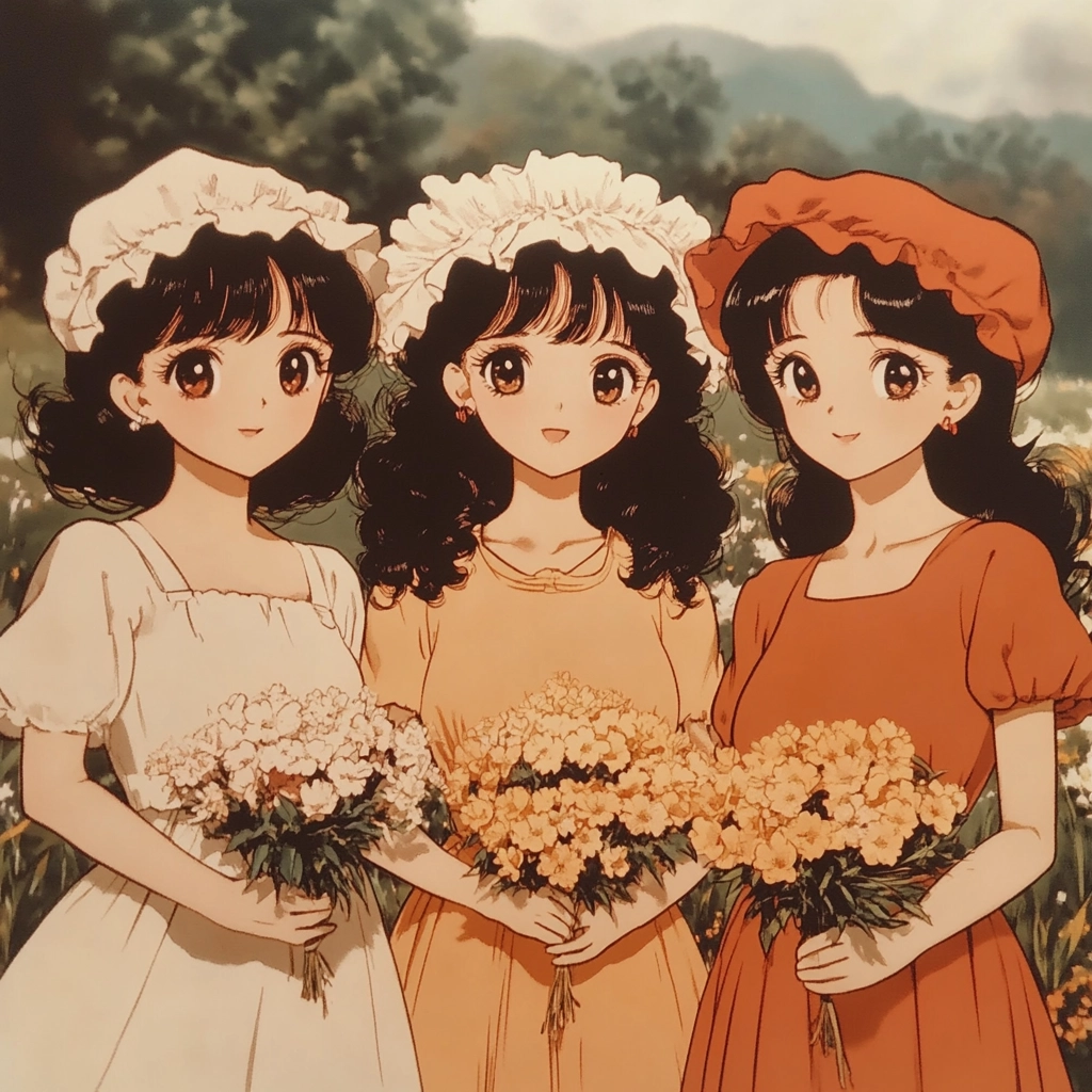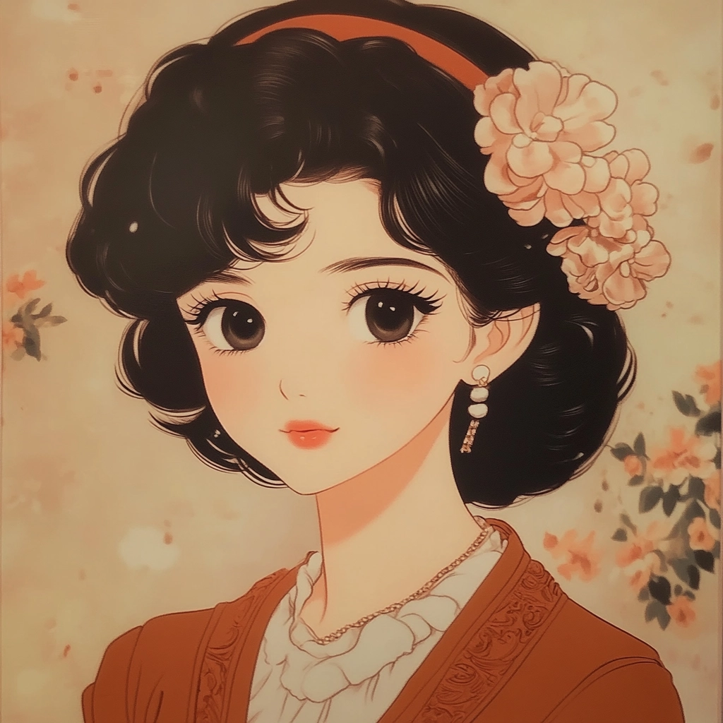 The composition is enriched with warm, earthy tones, clear lines, and delicate floral patterns, creating a nostalgic yet vibrant visual effect.