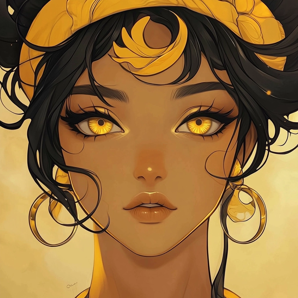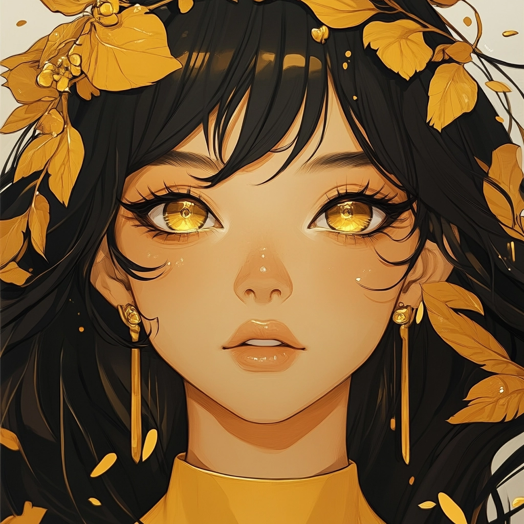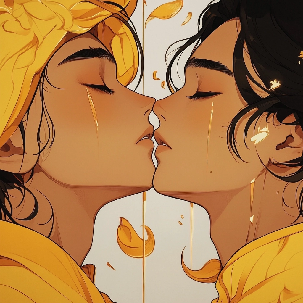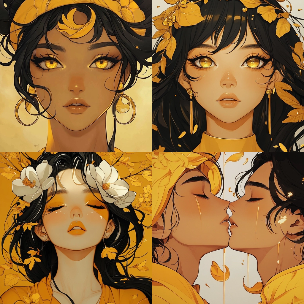 Lighting plays with stark contrasts, emphasizing the bold yellows against the richer dark tones. Yellow tones are warm and bright, creating a striking visual dynamic. The spatial layout is tight, focusing on details. Textures are smooth with an illustrative precision.