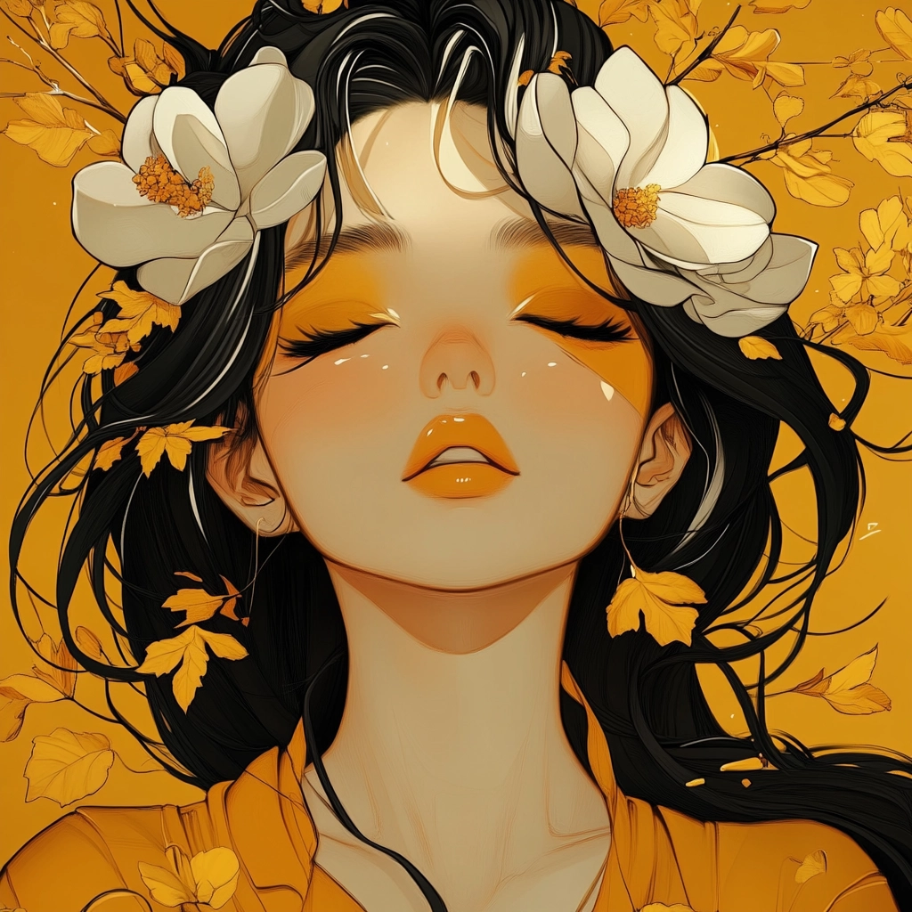 Vibrant yellow hues dominate with contrasting dark details and delicate white highlights.