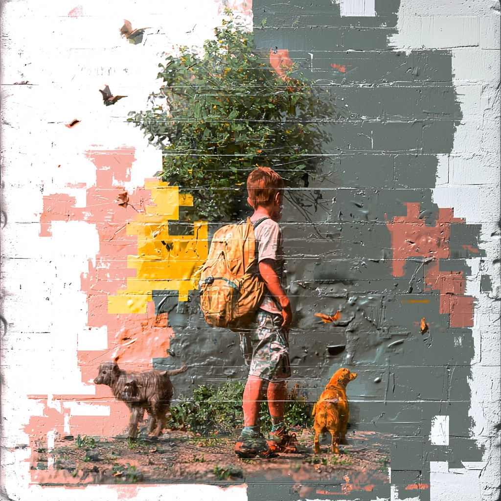 The work combines soft lighting with a coarse texture, creating the impression of aged surfaces. Overlapping color regions add dimensionality. Strategic placement of color hints at spatial variance while impasto-like textures construct tactile richness.