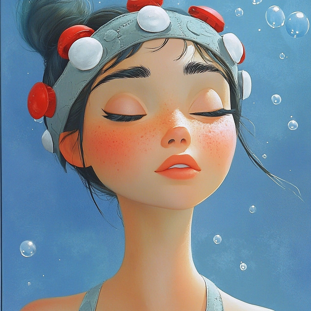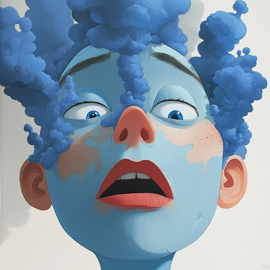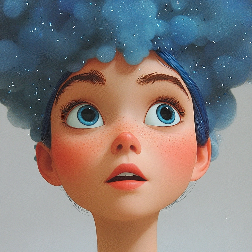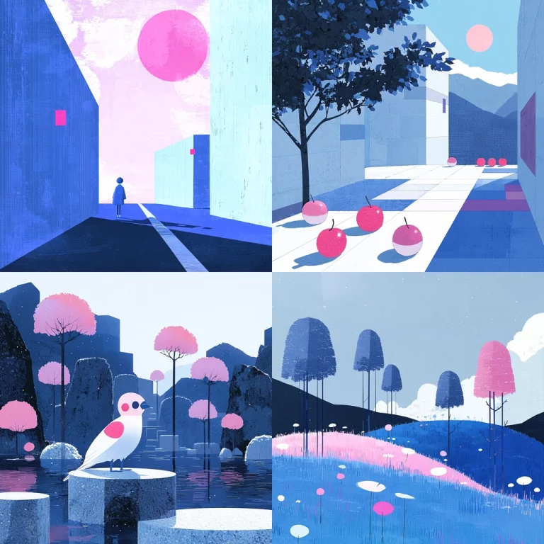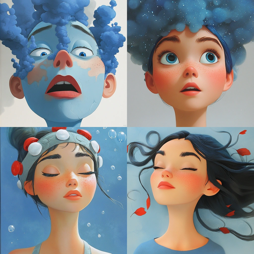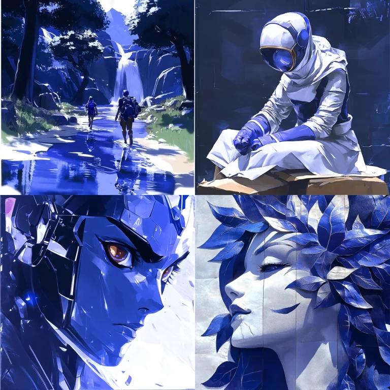 Dominant blue hues with playful accents.